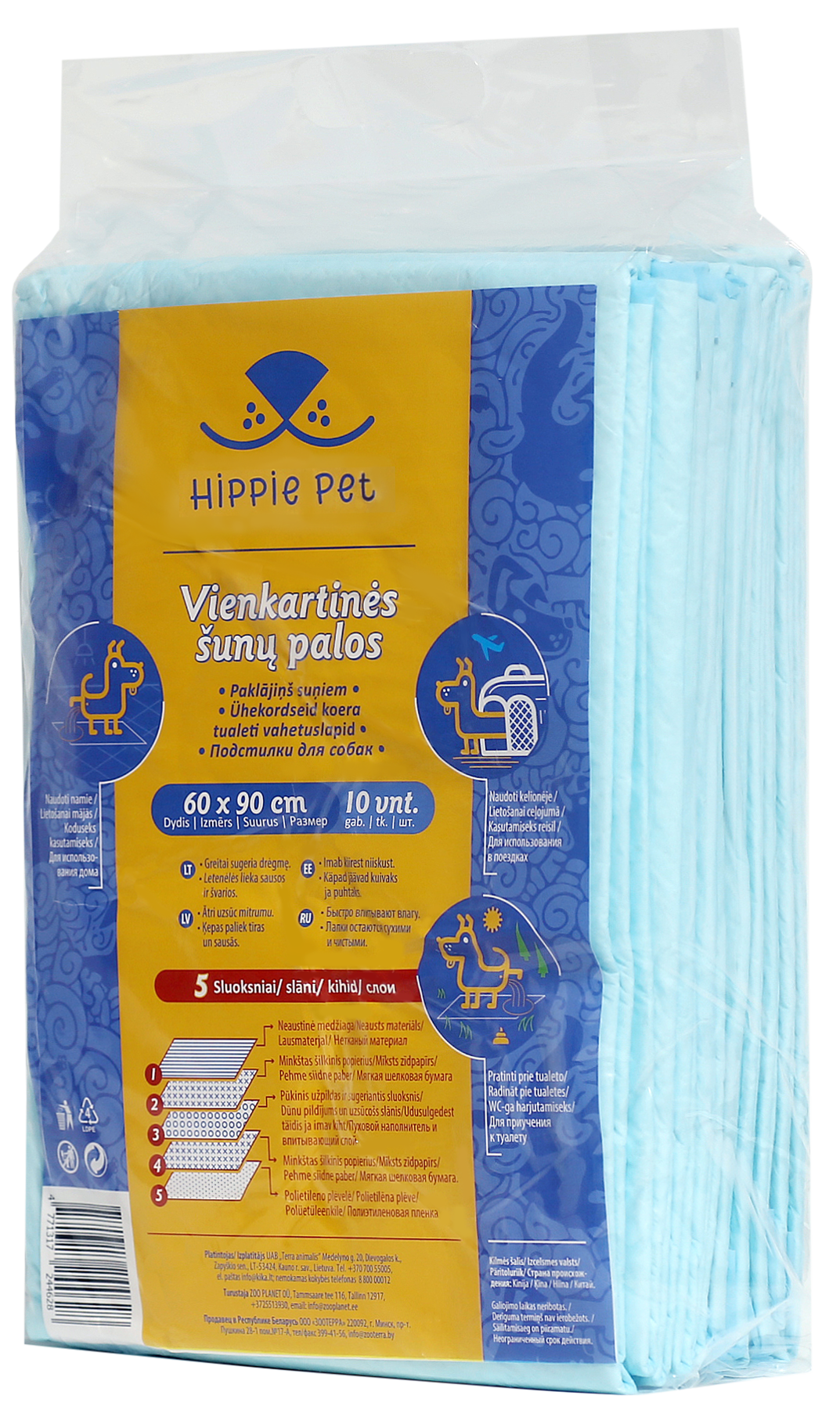 HIPPIE PET Absorbent Pet pads 60x90 cm, 10 pcs
