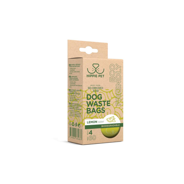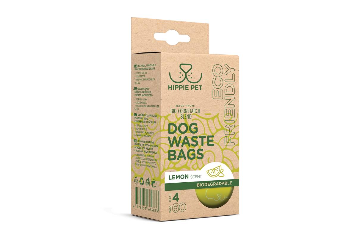 HIPPIE PET Biodegradable waste bags for dogs, 4x15 pcs. lemon scent
