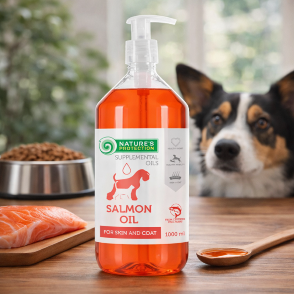 Nature’s Protection 100% Salmon Oil is a simple and natural way to supplement your pet’s daily diet with essential fatty acids and support overall well-being.