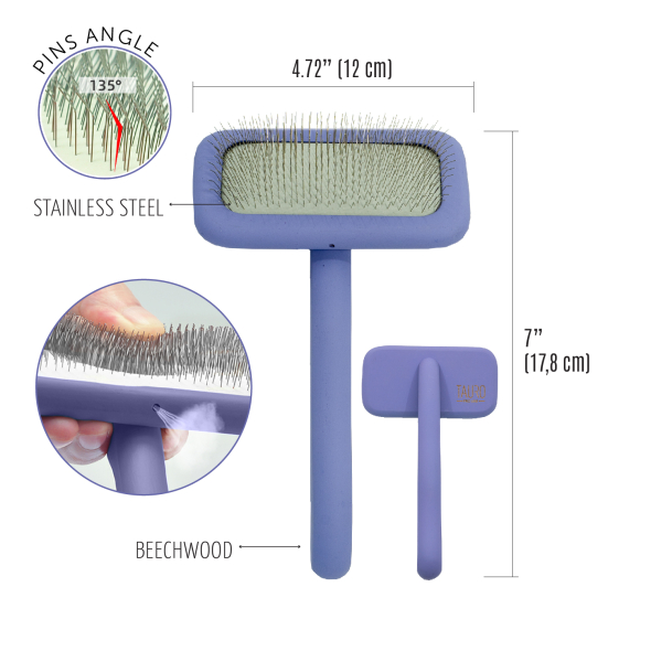 The Tauro Pro Line premium brush is expertly designed to make pet brushing easier. The brush has an ergonomically designed rectangular shape and is very lightweight, ensuring your hands won't tire while brushing. The soft and elastic cushion adapts to your pet's skin, while the 11 mm long curved stainless steel teeth effectively comb through the coat, remove dead hair and tangles, and provide a gentle massage to improve circulation and promote hair growth. With this Tauro Pro Line brush, you can easily reach even hard-to-reach areas: armpits, muzzle, ears, and paws. Suitable for all coat types and compatible with small, medium, and large breeds. The special anti-static coating on the brush prevents hair from becoming electrified, resulting in smoother and shinier coats. Discover the Tauro Pro Line brushes, crafted by professionals using top-quality materials to ensure optimal results and an enjoyable brushing experience.
