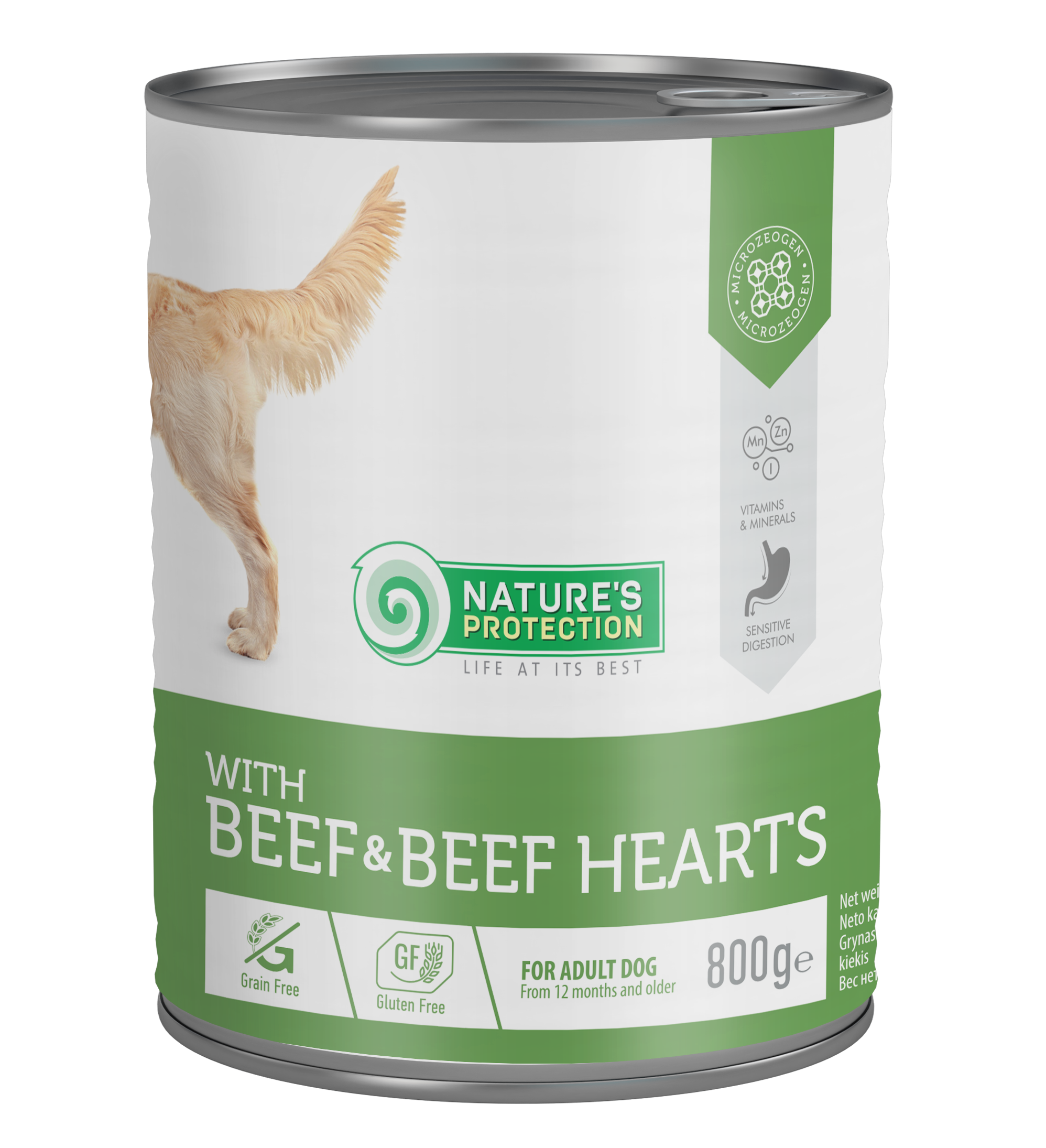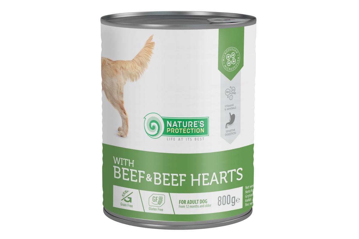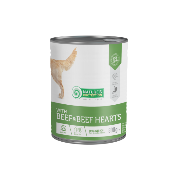 NATURE'S PROTECTION canned pet food for adult dogs with beef and beef hearts 800 g