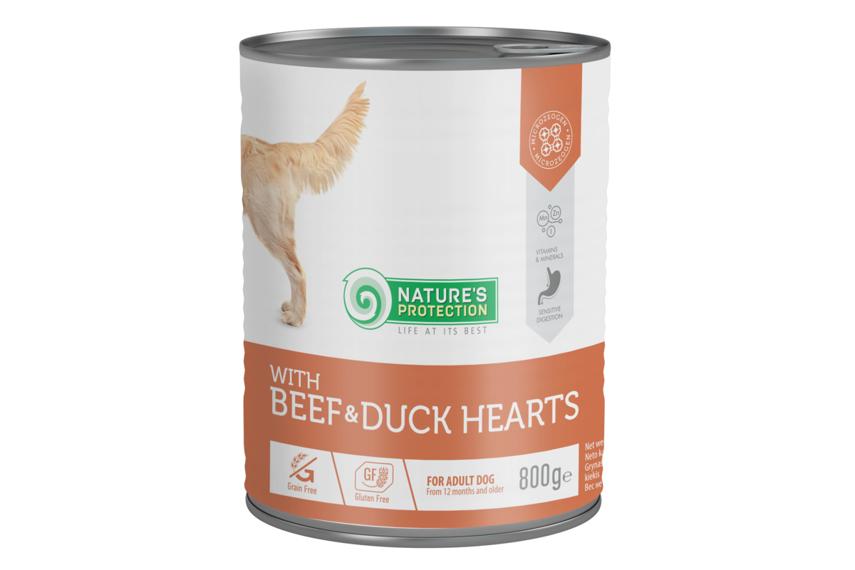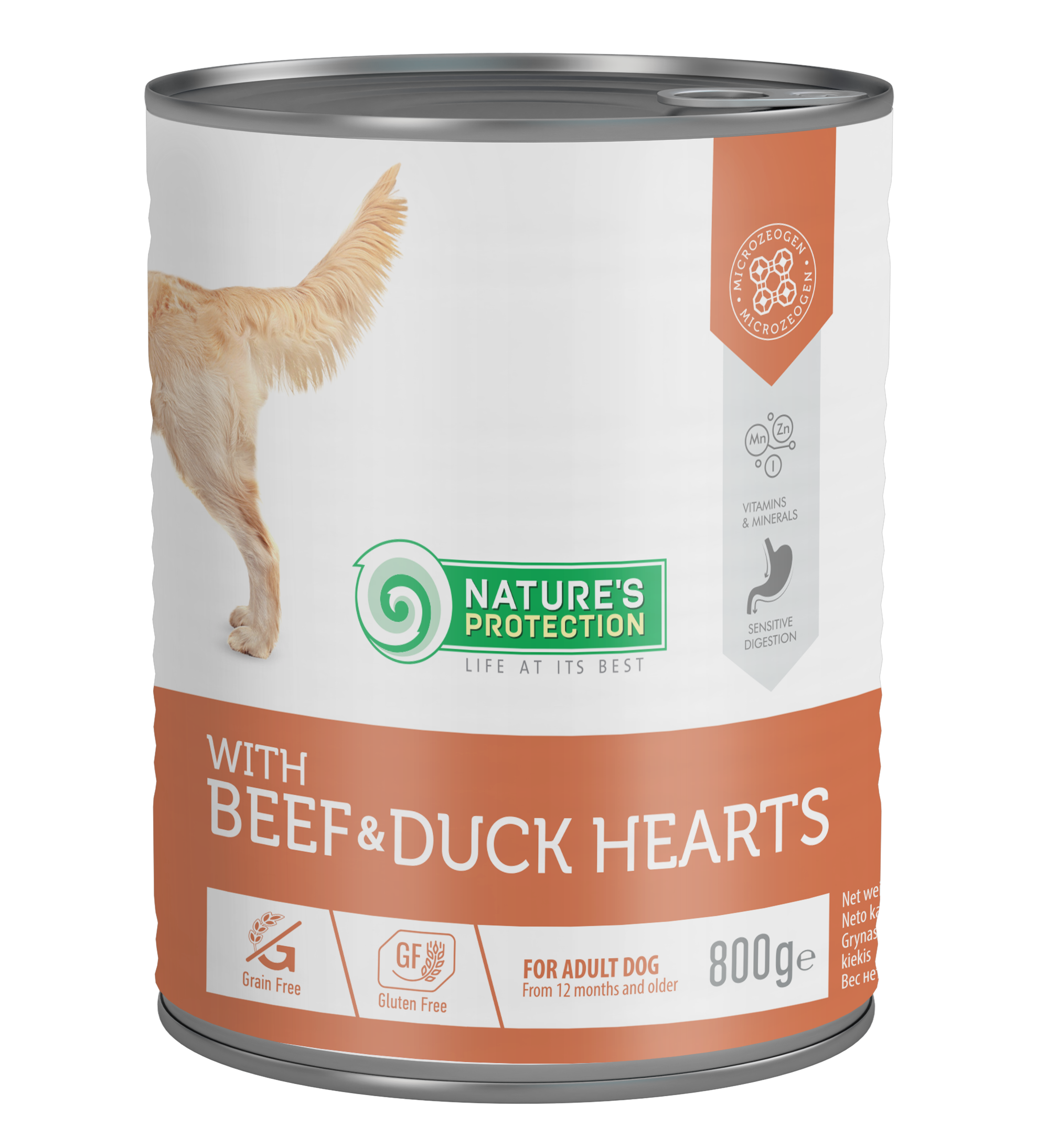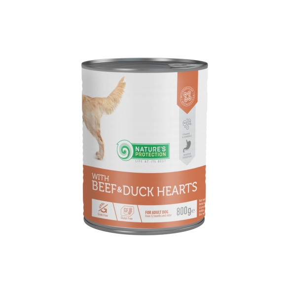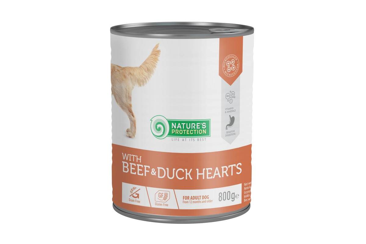 NATURE'S PROTECTION canned pet food for adult dogs with beef and duck hearts 800 g
