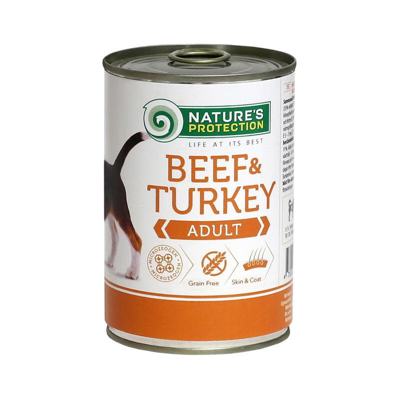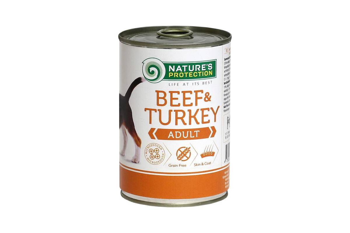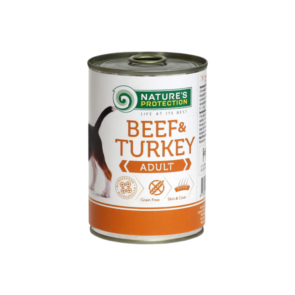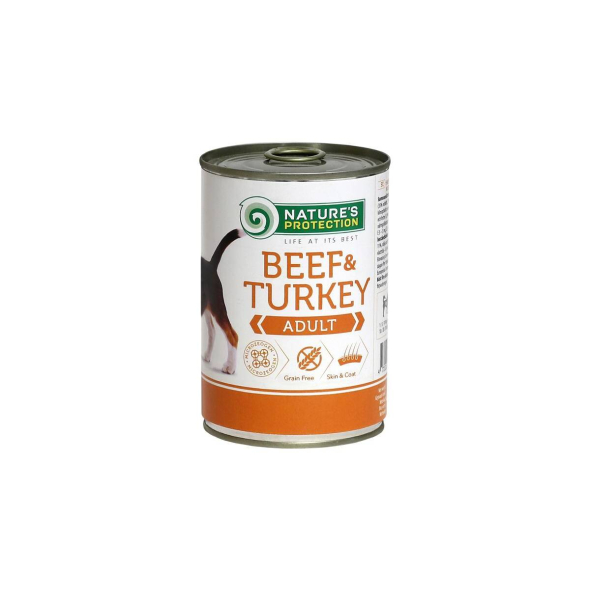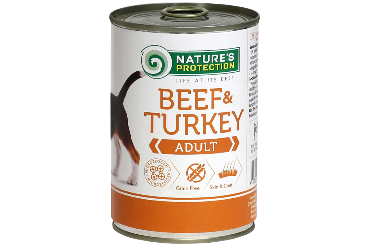 Nature's Protection Super Premium Canned Pet Food for Adult Dogs with Beef and Turkey offers a carefully crafted solution to meet the unique nutritional needs of adult dogs. With beef and turkey as its primary protein sources, this premium wet dog food provides high nutritional value to support your pet's overall health and vitality. The ingredients are gently cooked to retain their natural taste, aroma, and essential nutrients, ensuring a delicious and wholesome meal for your furry companion.