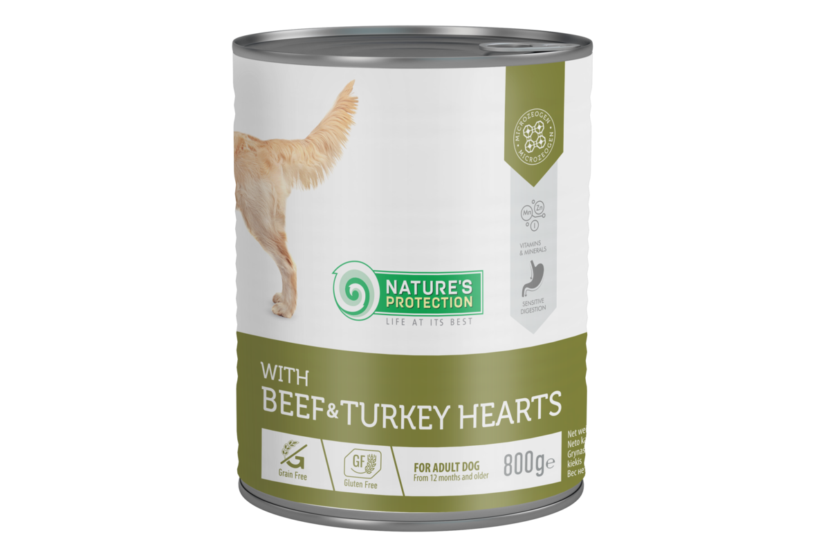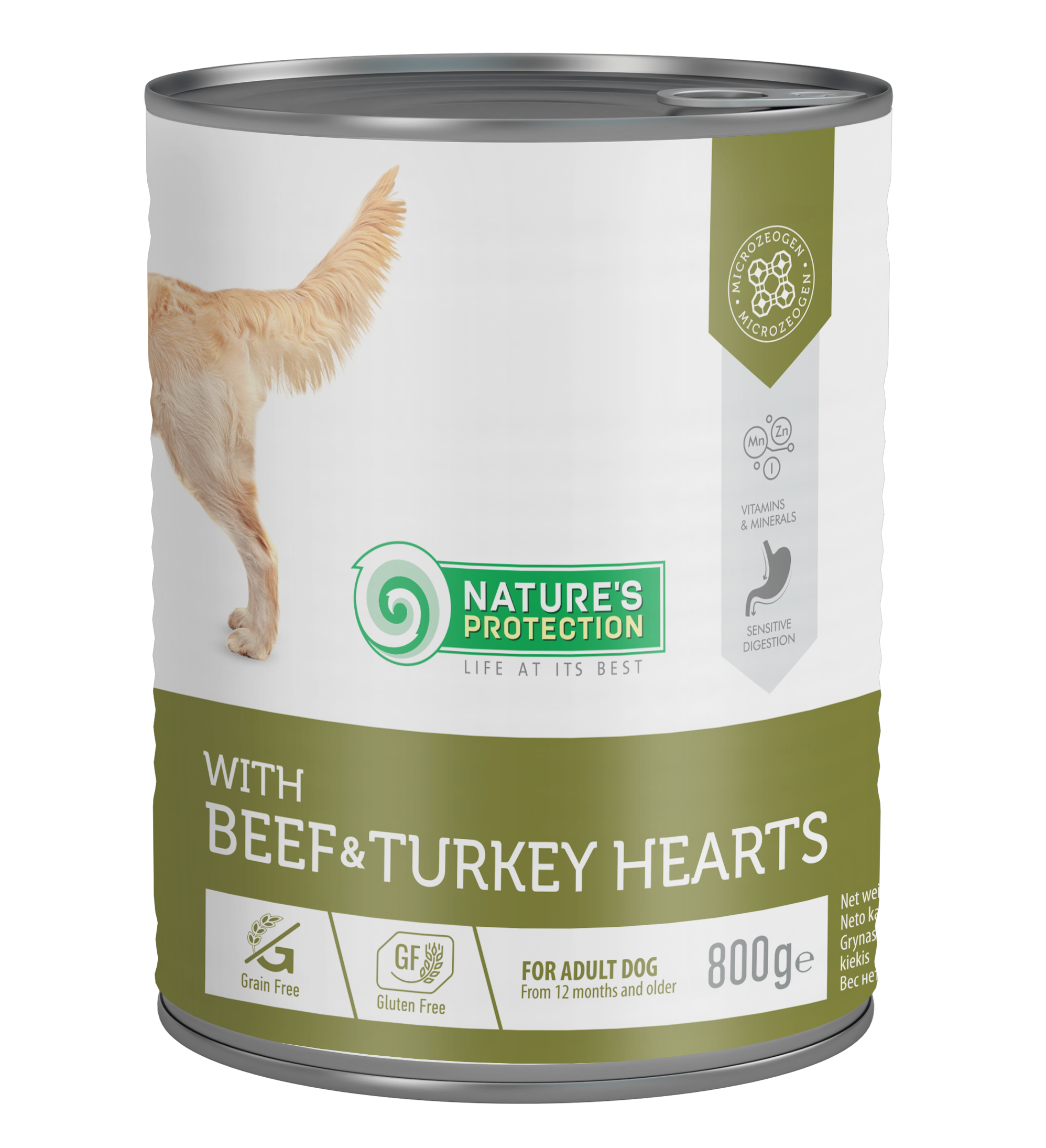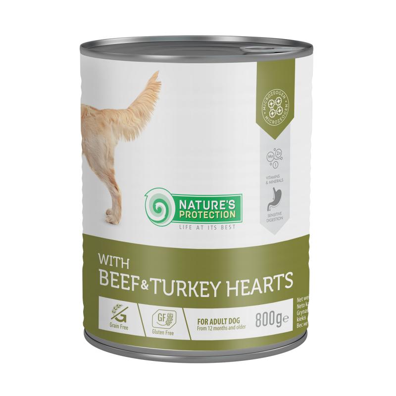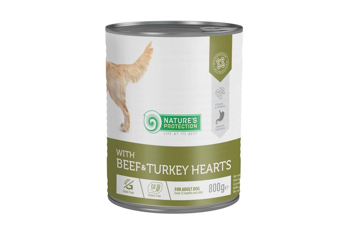 NATURE'S PROTECTION canned pet food for adult dogs with beef and turkey hearts 800 g