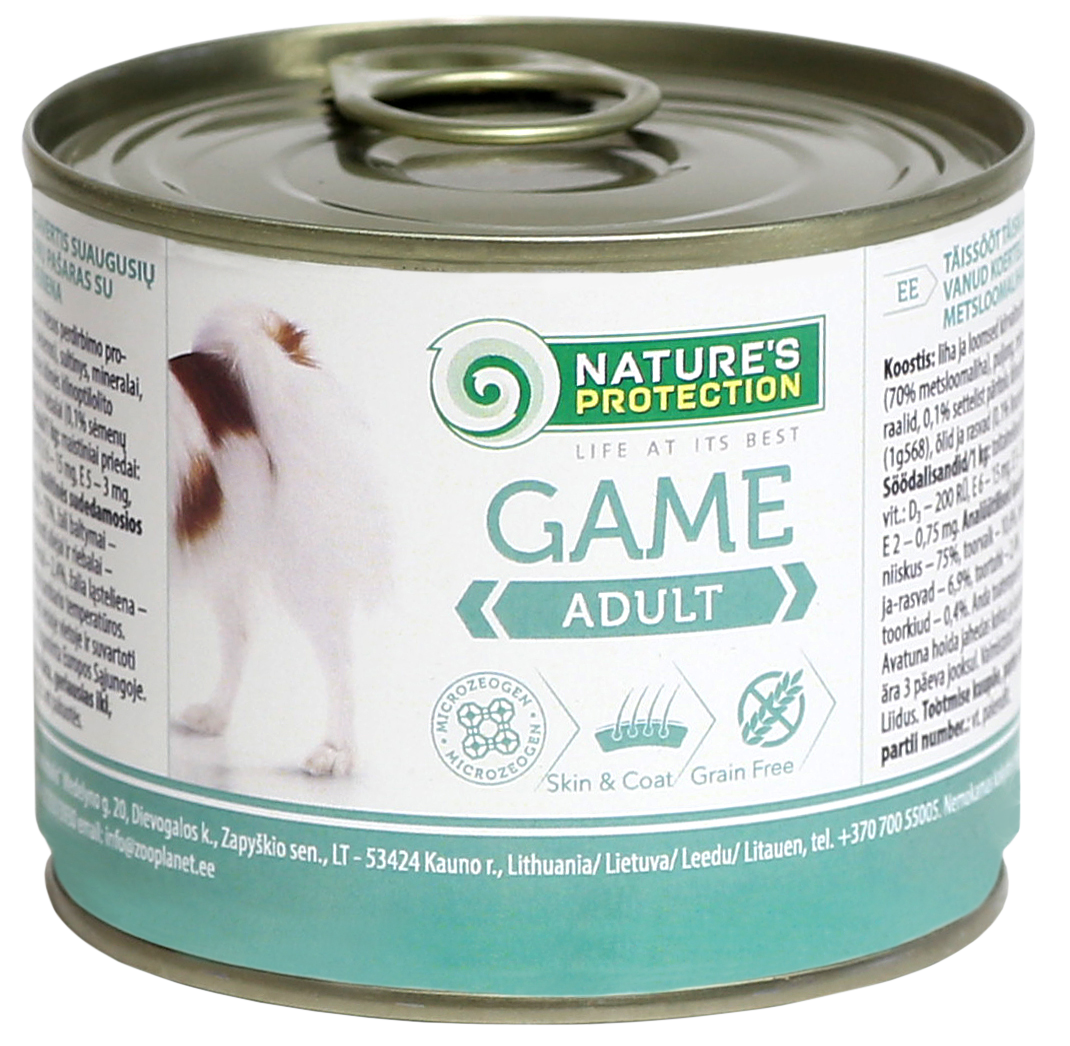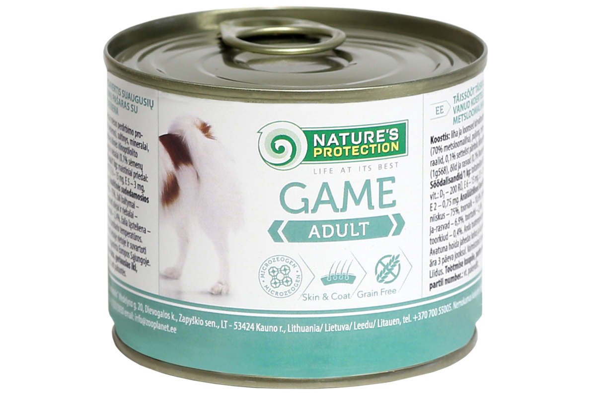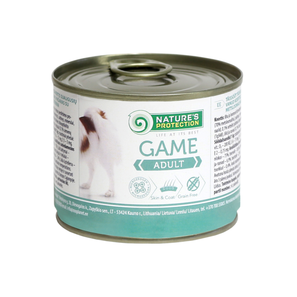 Nature’s Protection canned pet food for adult dogs with game is a premium, super-nutritious meal specially crafted to meet the dietary needs of adult dogs. The product features high-quality game meat as its primary protein source, providing excellent nutrition and taste. Gently cooked to preserve the natural aroma and nutrients, this canned food ensures your dog receives a flavorful, highly digestible meal that promotes optimal health. It serves as an ideal complement to Nature’s Protection dry dog food, enhancing the overall nutritional profile of your pet’s diet.