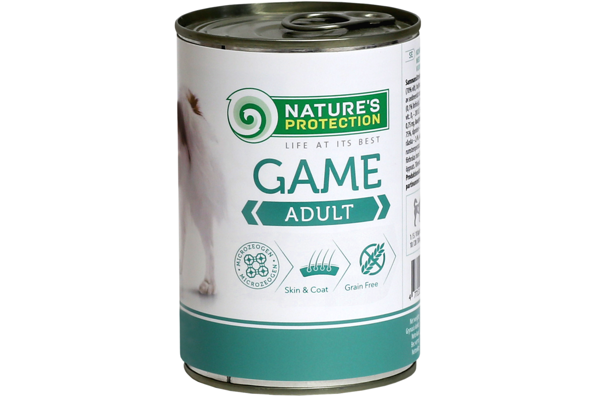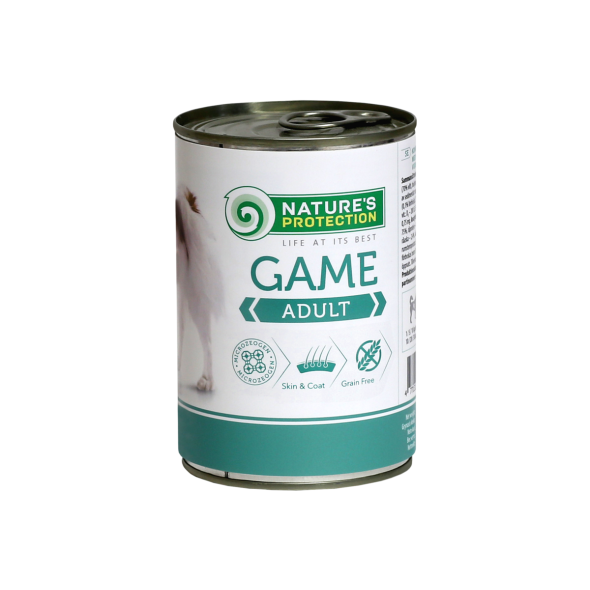 Nature’s Protection canned pet food for adult dogs with game is a premium, super-nutritious meal specially crafted to meet the dietary needs of adult dogs. The product features high-quality game meat as its primary protein source, providing excellent nutrition and taste. Gently cooked to preserve the natural aroma and nutrients, this canned food ensures your dog receives a flavorful, highly digestible meal that promotes optimal health. It serves as an ideal complement to Nature’s Protection dry dog food, enhancing the overall nutritional profile of your pet’s diet.