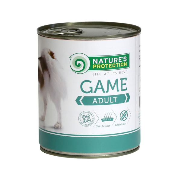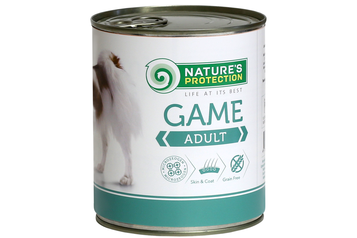 Nature’s Protection canned pet food for adult dogs with game is a premium, super-nutritious meal specially crafted to meet the dietary needs of adult dogs. The product features high-quality game meat as its primary protein source, providing excellent nutrition and taste. Gently cooked to preserve the natural aroma and nutrients, this canned food ensures your dog receives a flavorful, highly digestible meal that promotes optimal health. It serves as an ideal complement to Nature’s Protection dry dog food, enhancing the overall nutritional profile of your pet’s diet.