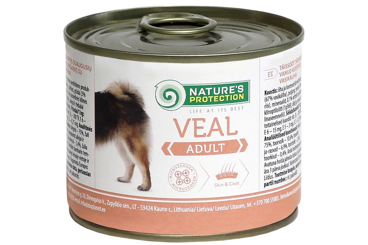 Nature's Protection Canned Pet Food for Adult Dogs with Veal is crafted to provide premium nutrition tailored to the needs of adult dogs. Featuring veal as the primary source of high-quality protein, this wet food delivers essential nutrients in a delicious, gently cooked recipe. Designed to retain natural taste, aroma, and nutritional value, it offers an ideal complement to Nature’s Protection dry food diets.