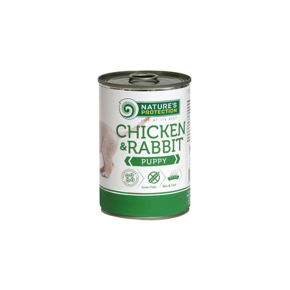Nature's Protection canned pet food for junior dogs with chicken and rabbit is a Super Premium wet food crafted to meet the nutritional needs of growing puppies. This high-quality formula contains carefully selected proteins from chicken and rabbit, providing essential amino acids for healthy growth, muscle development, and overall well-being. Gently cooked to preserve the natural taste and aroma, this food retains its full nutritional value, ensuring that your puppy receives optimal nourishment in every bite.