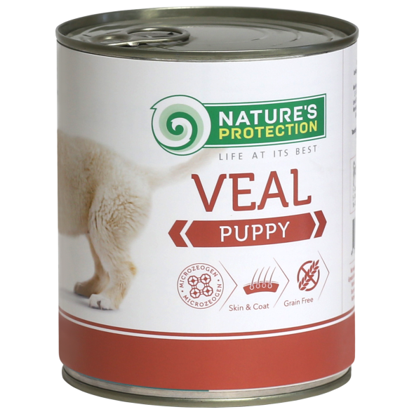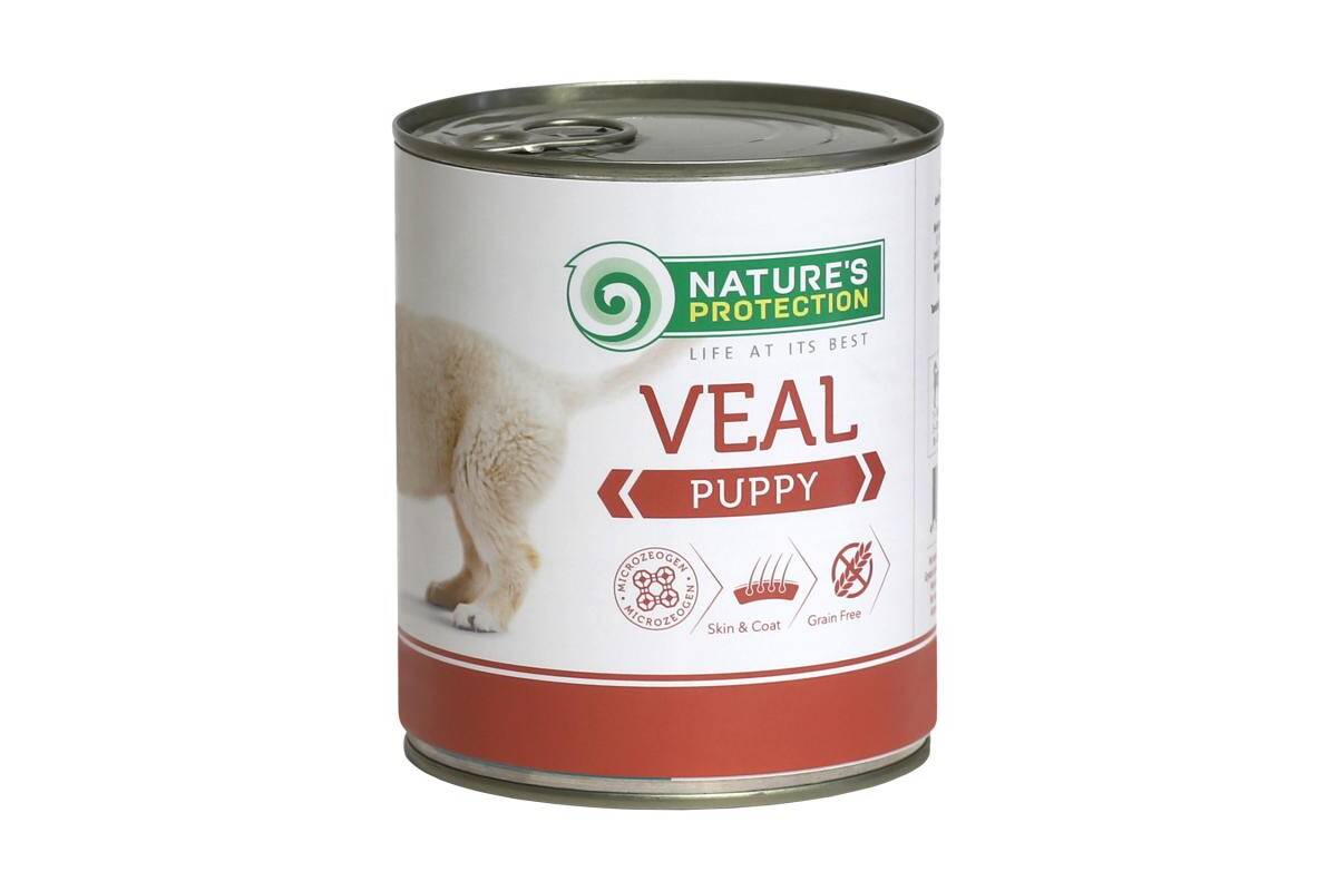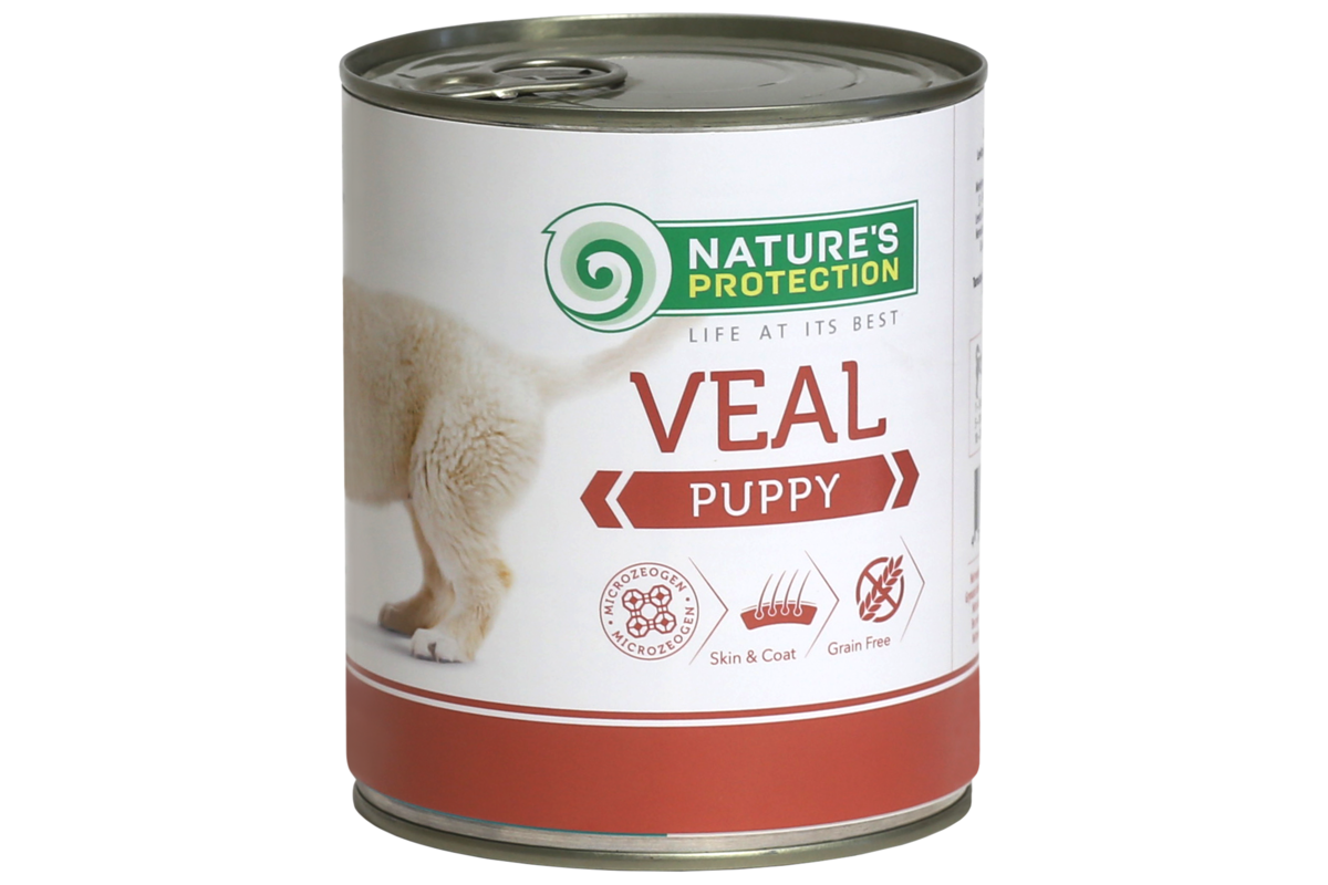 Nature's Protection canned food is enriched with natural supplements like MicroZeoGen, which helps to remove toxins from the body while supporting a healthy immune system. It’s conveniently packaged in ready-to-serve portions, making it the perfect choice for home feeding, travel, or even exhibitions. Give your growing dog a delicious, nutritious meal with Nature’s Protection veal canned food.