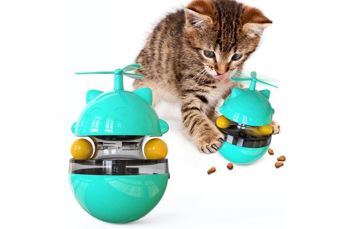 Fill the ball with cat-safe treats or dry food. Place it on the floor – as the cat pushes it, treats are released while the propeller spins to add extra engagement.