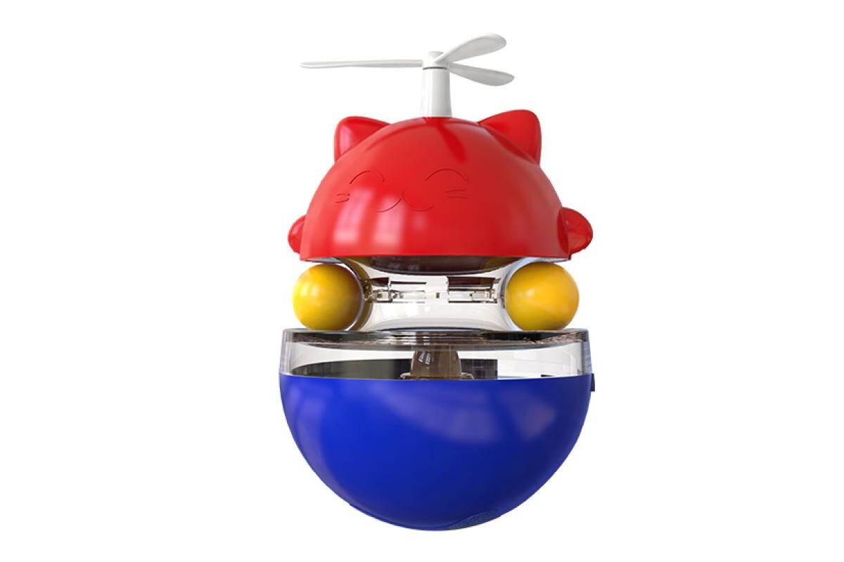 MISOKO&FRIENDS cat toy, interactive ball, with treat compartment and spinning propeller top red/blue