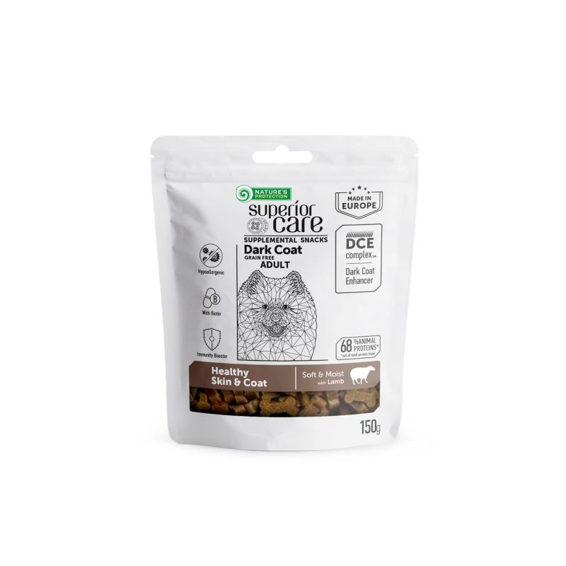 NATURE'S PROTECTION SUPERIOR CARE complementary grain free feed – snacks to support healthy skin and coat with lamb for adult dark coat dogs 150 g