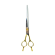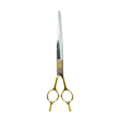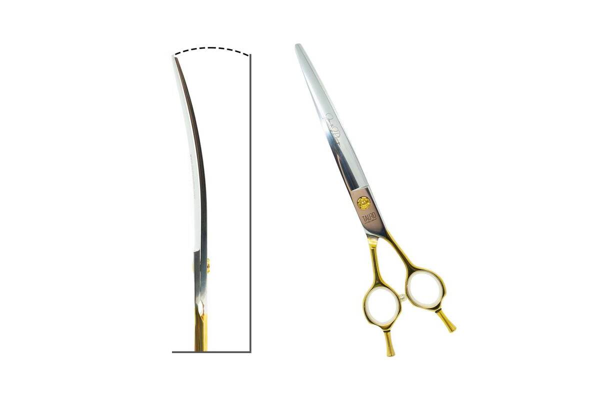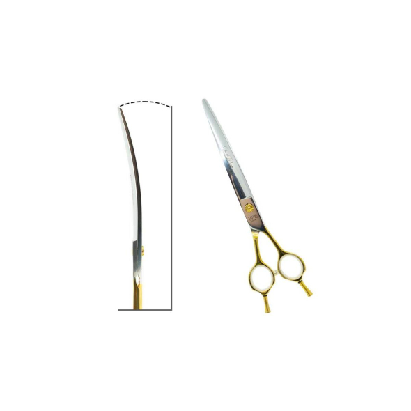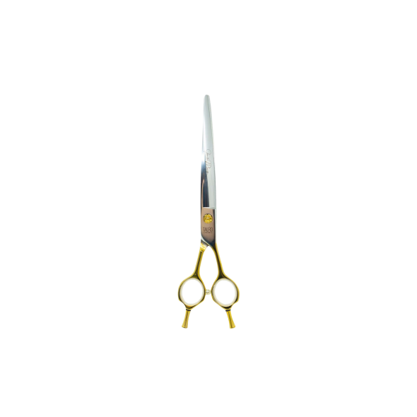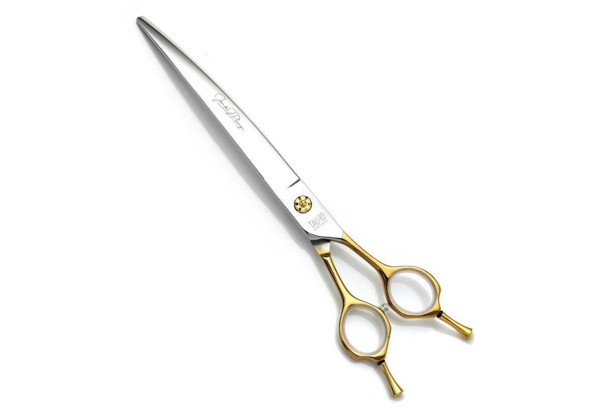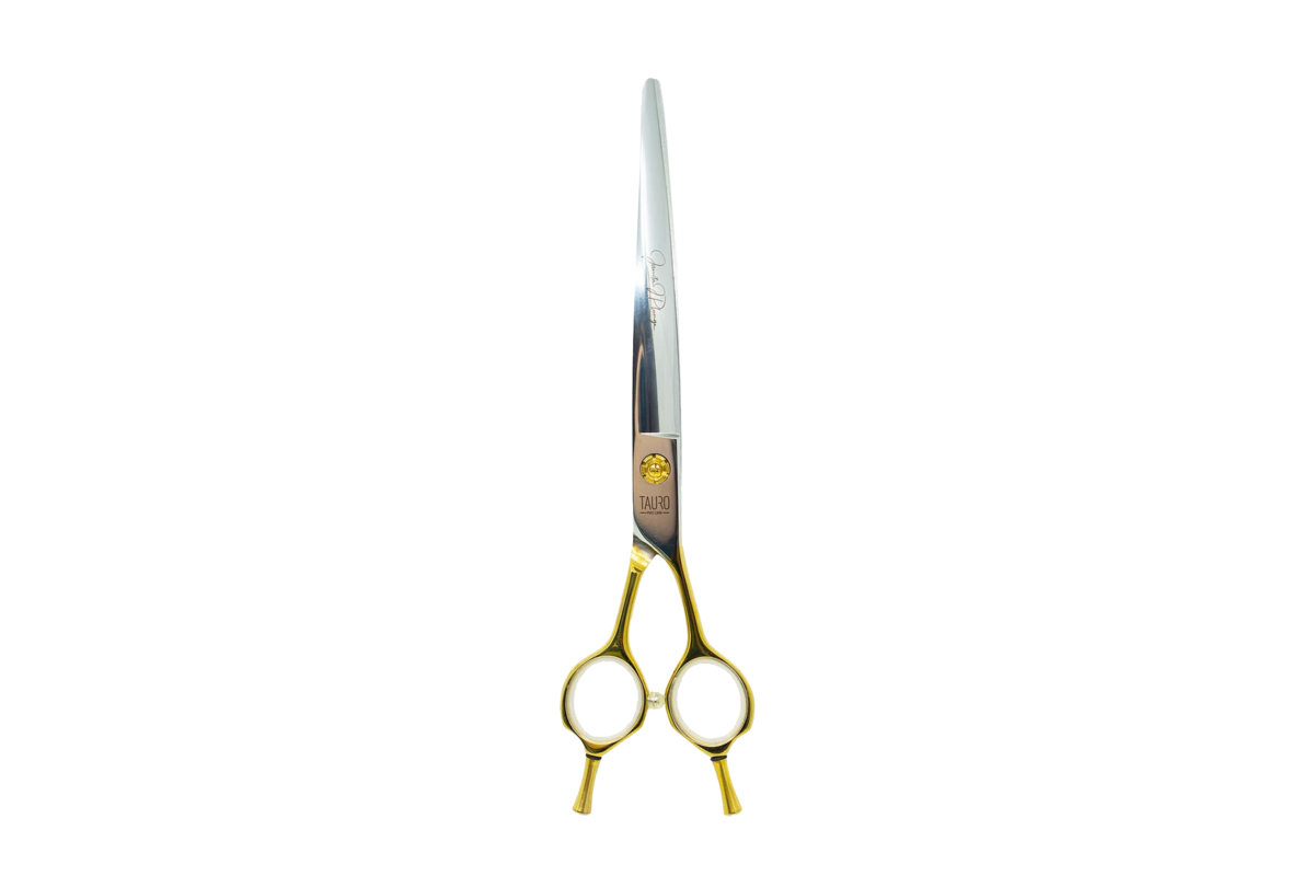 Tauro Pro Line curved scissors, Janita Plunge Line, made of the highest quality 440c grade stainless steel, are highly regarded as effective tools for grooming coats. These scissors are built to last for many years, thanks to their superior manufacturing technology. This manufacturing technology ensures the highest quality – the scissors are extremely lightweight, ergonomic and designed for continuous, long-term use. Thanks to its special design, the scissors are extremely easy to handle and will become an indispensable tool for coat care. Specifically designed for cutting curved areas of animals' bodies, such as legs and chests, these stainless steel curved scissors excel in precision. They offer easy and safe cutting around the muzzle, eyes, ears, and feet, reducing strain and fatigue on the hands. As a result of their exceptional quality and effortless control, they have become a preferred choice among grooming professionals. Small additional details ensure the stability of the scissors in the hands and mitigate the risk of the blades crossing. To maintain their longevity, it is essential to clean the scissors after each dog's haircut and handle them with care to avoid damage. Proper maintenance reduces the frequency of sharpening. Due to their length and 440c stainless steel construction these durable scissors are an indispensable tool for cutting a pet's coat.