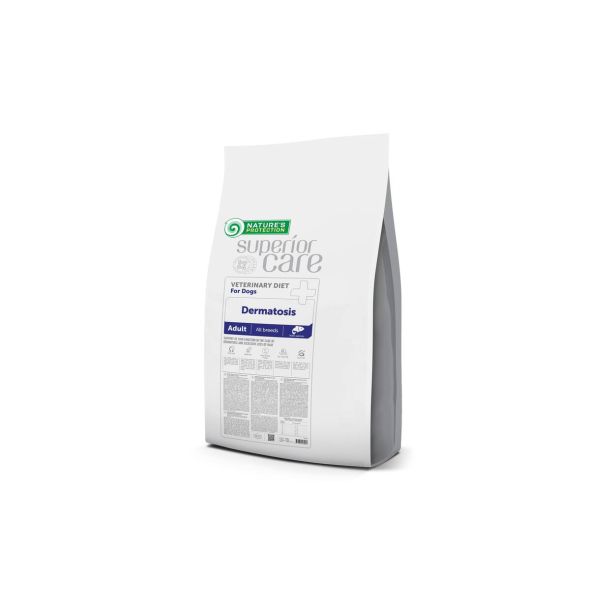Nature's Protection Superior Care Veterinary Diet Dermatosis dog food ingredients were exceptionally balanced to improve skin and coat health. It contains a single source of animal protein, which helps avoid other animal protein allergens in the diet that might cause symptoms. The specially selected diet recipe does not contain grains or gluten, reducing the risks of allergy to cereal proteins and gluten intolerance.