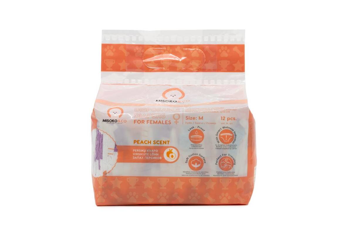 MISOKO disposable diapers for female dogs with puppies and bones, moisture indicator, peach scent, size M, 12 pcs.