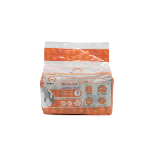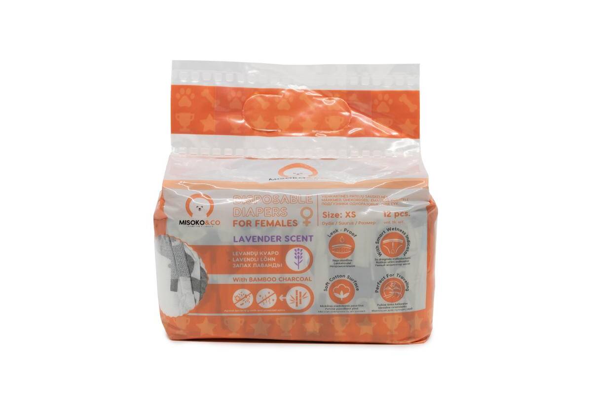 MISOKO disposable diapers for female dogs with puppies, charcoal, moisture indicator, lavender scent, XS size, 12 pcs.