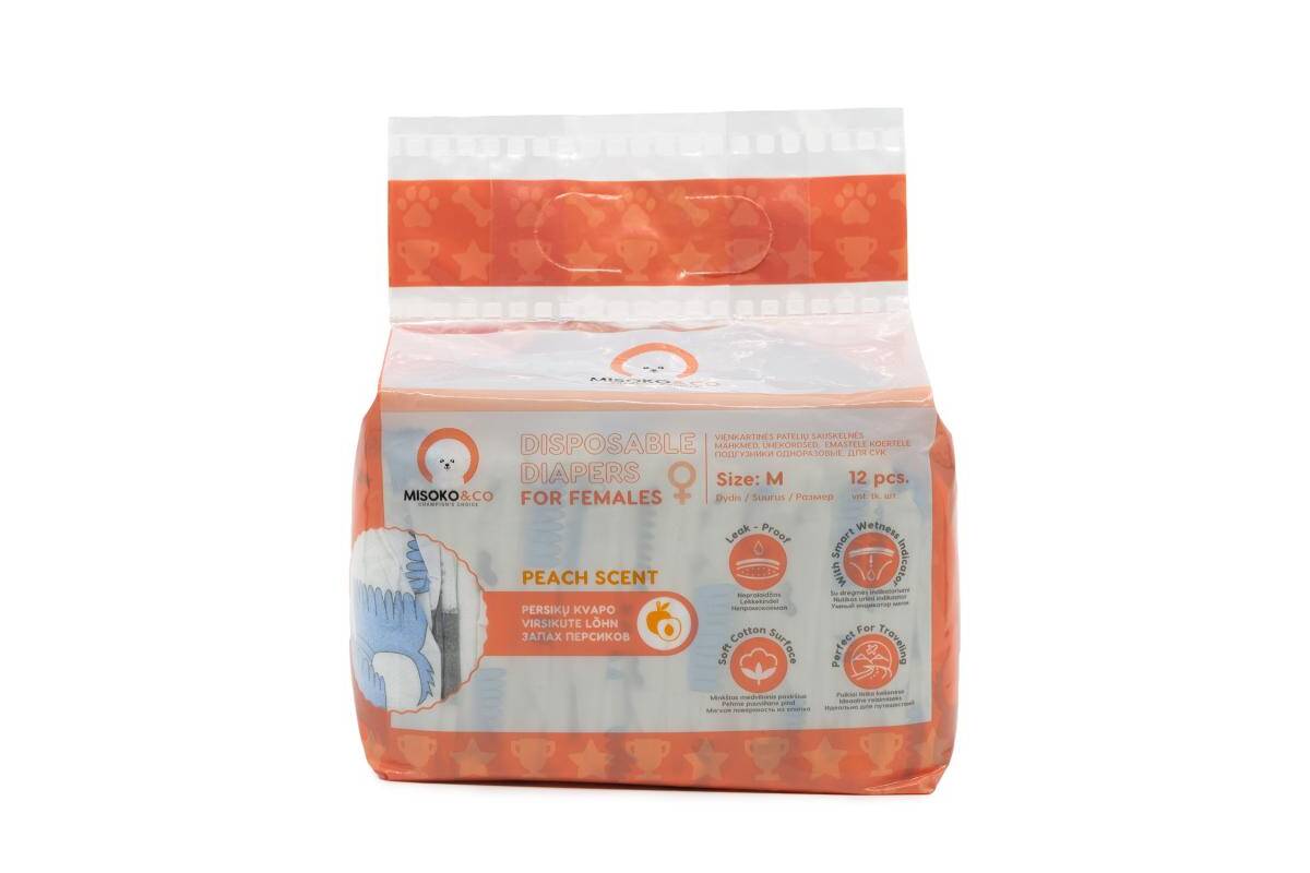MISOKO disposable diapers for female dogs with puppies, moisture indicator, peach scent, size M, 12 pcs.