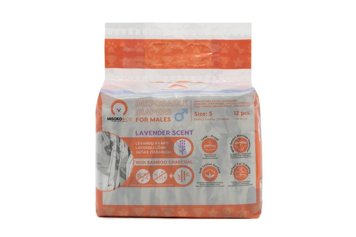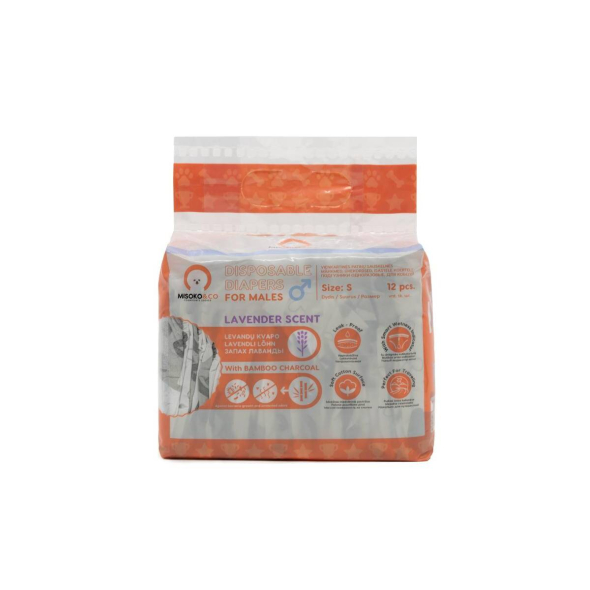 MISOKO disposable diapers for male dogs with puppies, charcoal, moisture indicator, lavender scent,size S, 12 pcs.