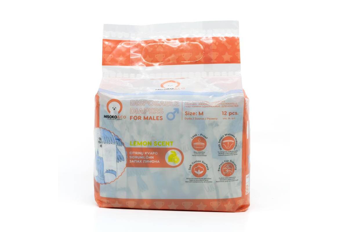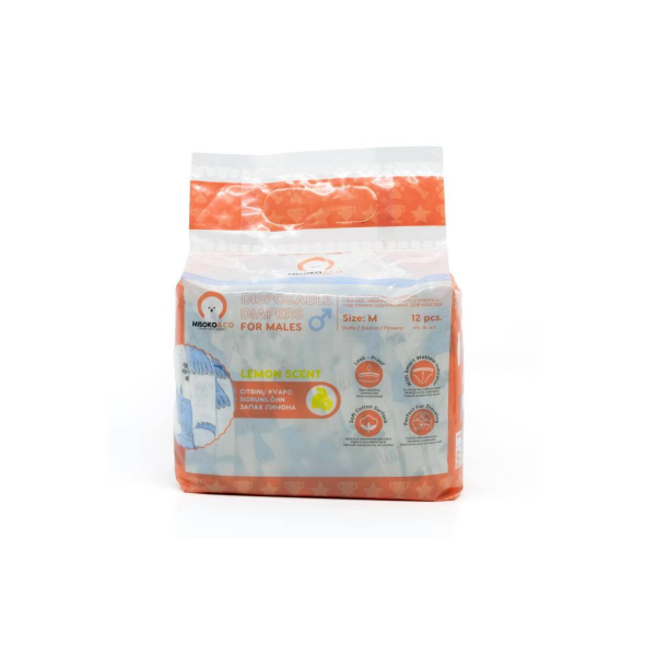 MISOKO disposable diapers for male dogs with puppies, moisture indicator, lemon scent, size M, 12 pcs.