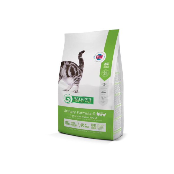 Nature's Protection Urinary Formula-S for adult cats are created with ingredients that are perfect for providing the necessary amount of calories, vitamins and minerals for cats with urinary tract systems prone to struvite bladder stones. The main protein source of this dry cat food is poultry. It is a high quality protein that is an excellent source of nutrition for cats, as it is packed with essential nutrients that can help promote good health. This dry food's complete and balanced composition is enriched with natural supplements like MicroZeoGen that help remove toxins from the body and support a healthy immune system. The composition is enriched with Omega-3 and Omega-6 fatty acids essential for healthy skin and coat conditions. As well as mono- and polyunsaturated fatty acids support the immune system, while saturated fatty acids provide required energy. This cat food is also fiber-rich diet that can help maintain healthy bowel movements, which can reduce the pressure on the bladder and urinary tract. All ingredients are carefully selected by veterinary and nutritional experts based on the true needs of your pet.