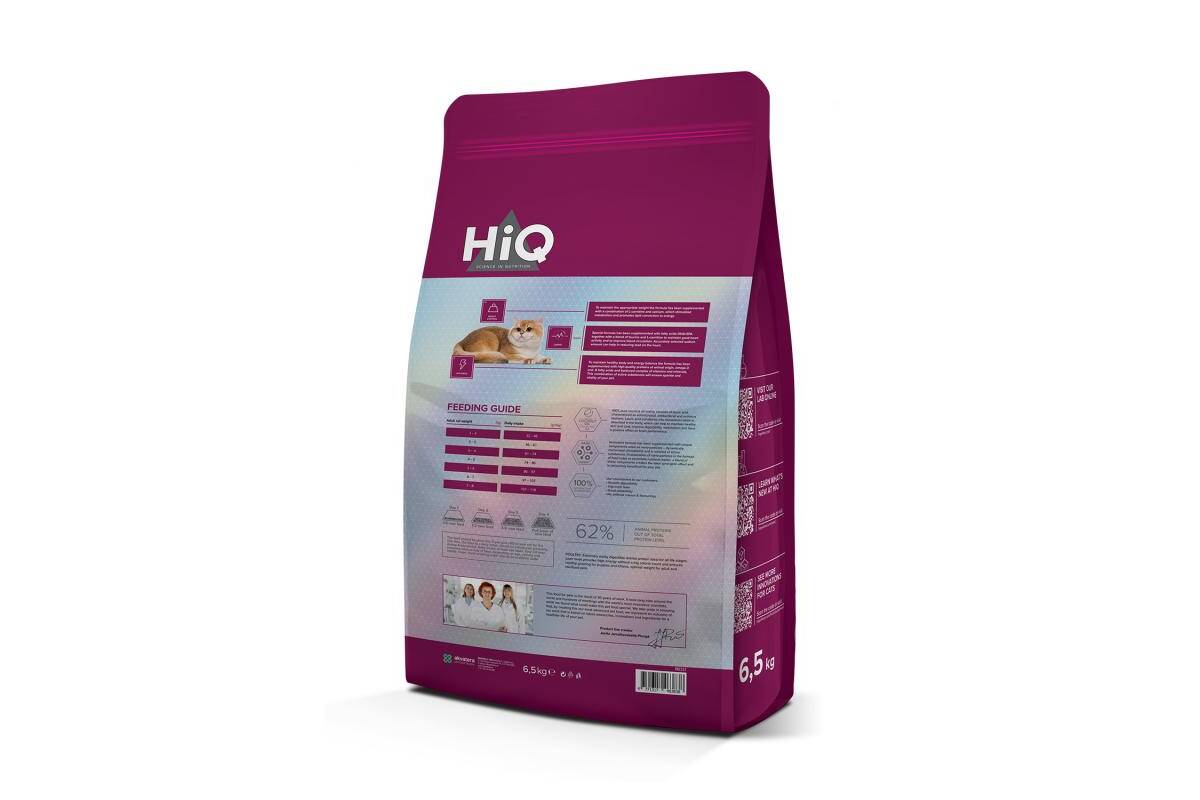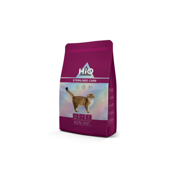HiQ Sterilised Care is a Super Premium (premium) quality dry feed for adults, 1 year old andolder cats after sterilization and cats after castration. for proper metabolism and optimal weight of the cat.