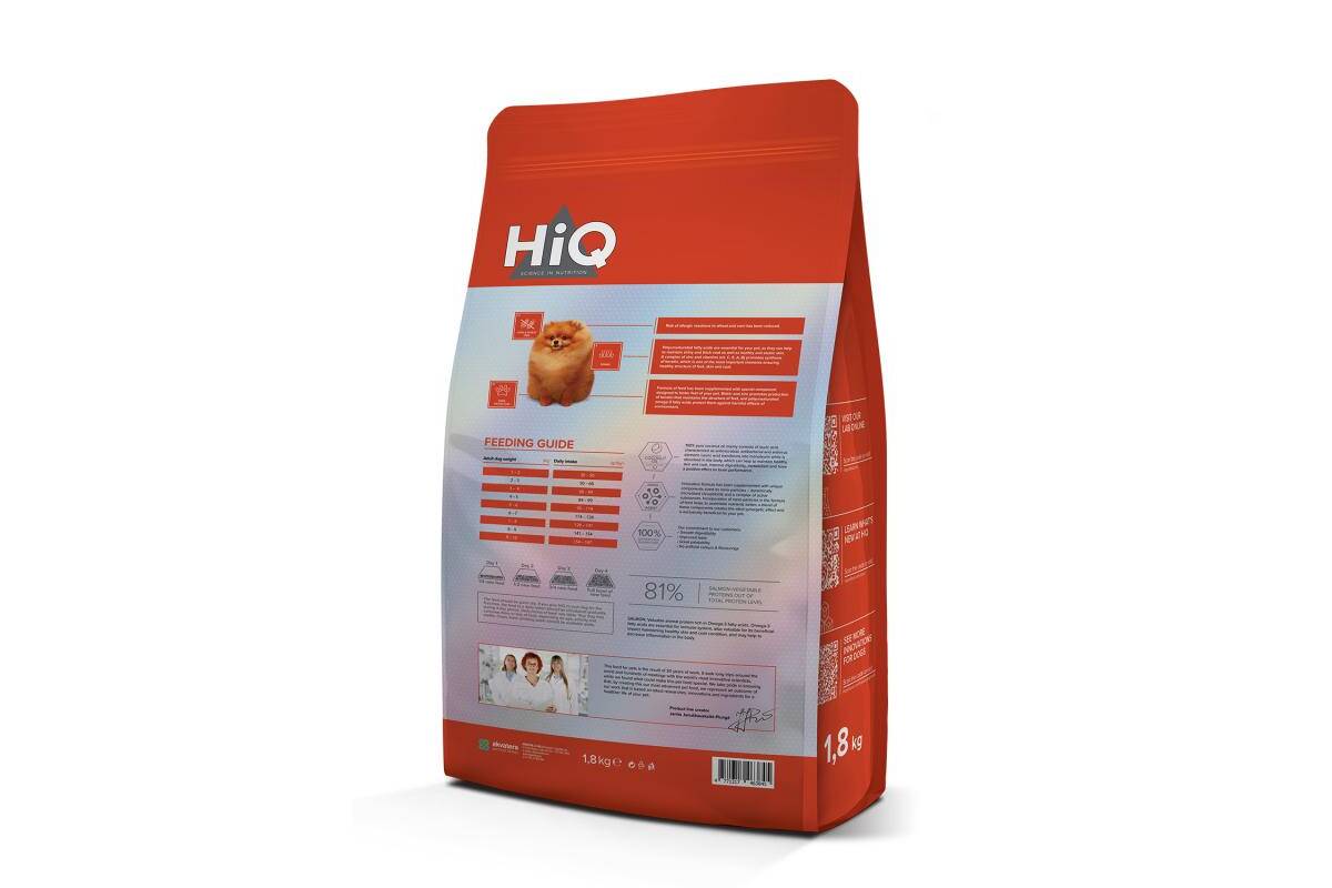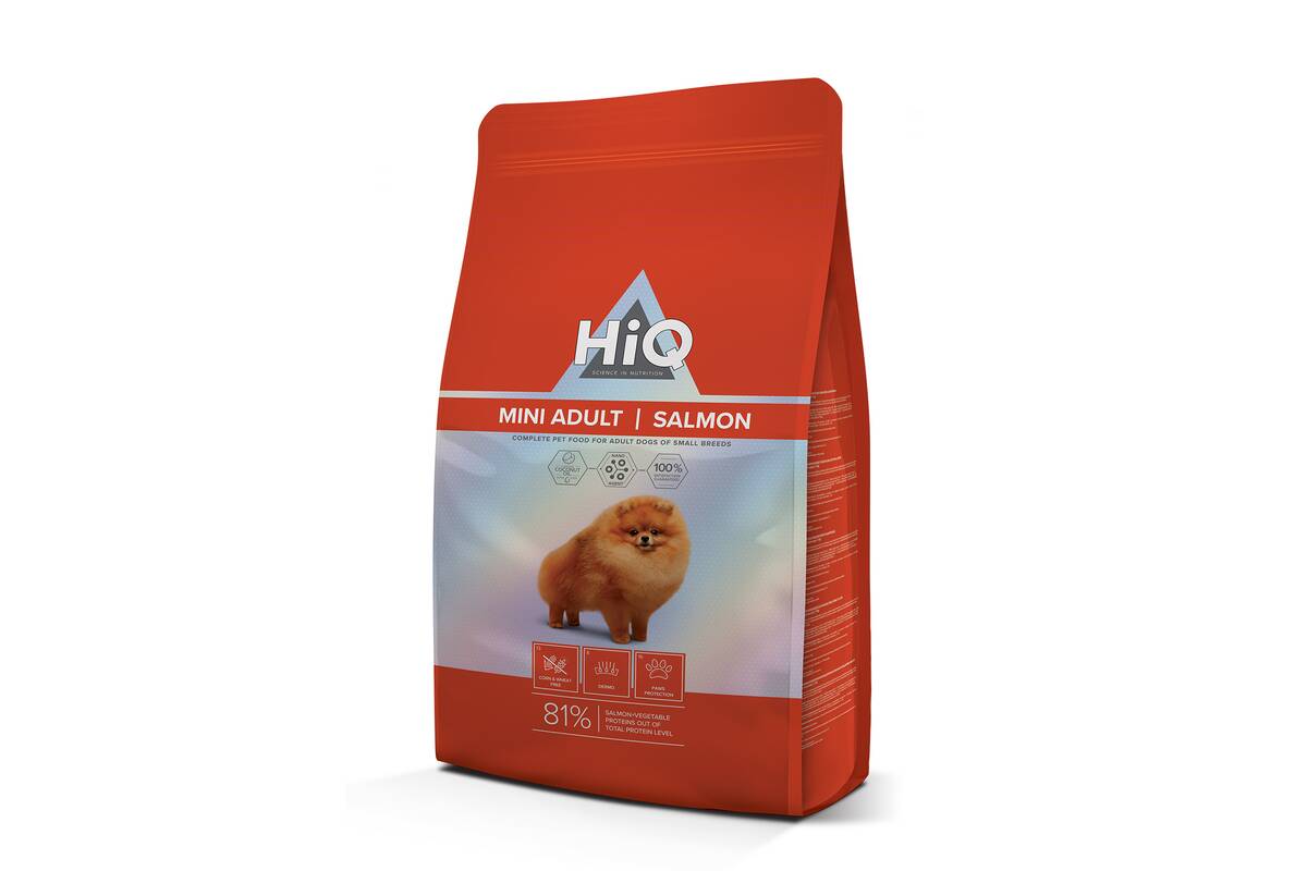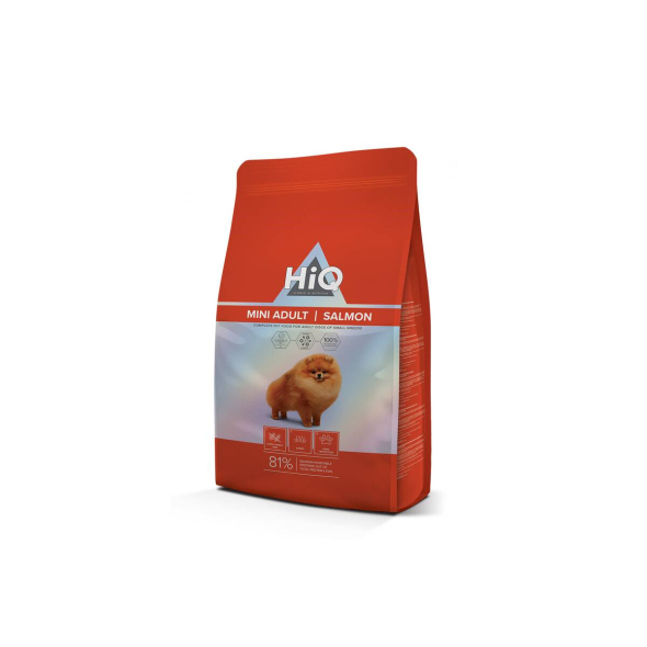 HiQ Mini Adult Salmon- Super Premium (premium) quality dry food for small breeds (1-10 kg) for adult dogs for smooth bowel activity and excellent digestion. The composition of this dry food is enriched with unique ingredients, which especially improve the well-being of small breeds of puppies. The ingredients will not only provide your pet's body with all the necessary materials, but will also ensure a good condition for theskin.