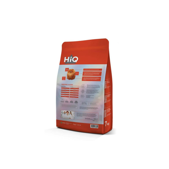 HiQ Mini Adult Salmon - Super Premium (premium) quality dry food with salmon for adult dogs of smallbreeds (1-10 kg). Ideal for pets with a sensitive digestive system. In dogs that are not tolerated by maize, this food does not aggravate the digestive tract.