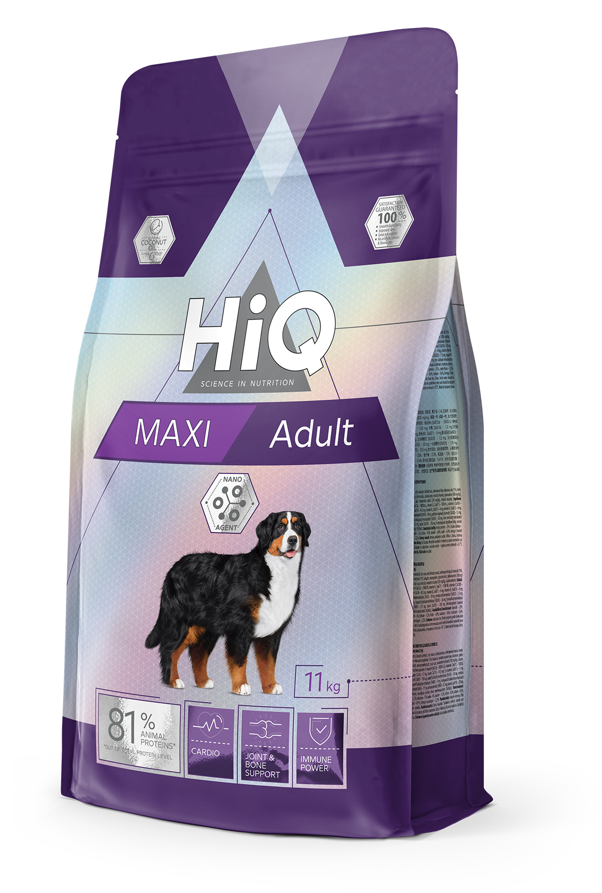 HiQ Maxi Adult is a Super Premium (premium) quality dry food specially designed for large breeds (from 25 kg) for adultdogs. The food is containing the most easily digestible proteins of animal origin to maintain adequate muscle tone.