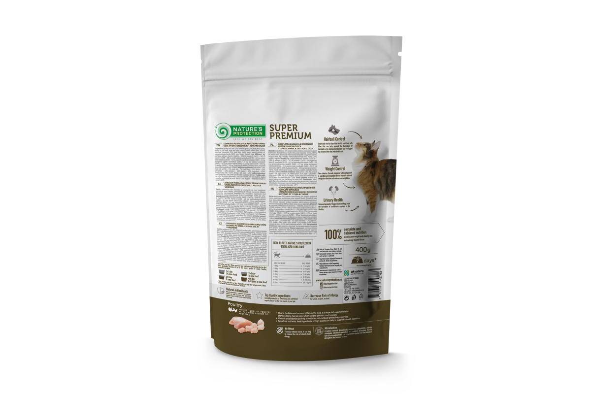 NATURE'S PROTECTION dry food for adult long haired cats after sterilisation with poultry 400 g