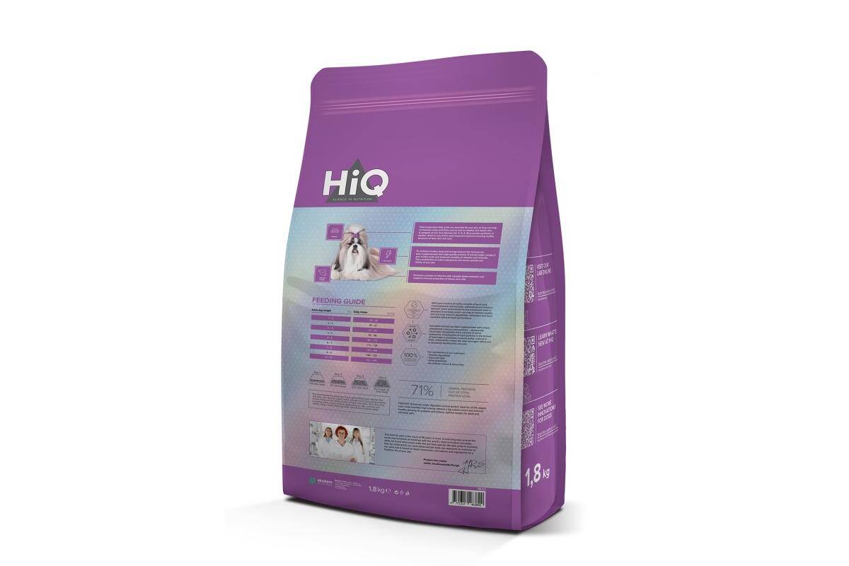 HiQ Mini Adult - Super Premium (premium) quality dry food for small breeds (1-10 kg) for adult dogs for smooth bowel activity and excellent digestion. The composition of this dry food is enriched with unique ingredients, which especially improve the well-being of small breeds of puppies. The ingredients will not only provide your pet's body with all the necessary materials, but will also ensure a good condition for theskin.