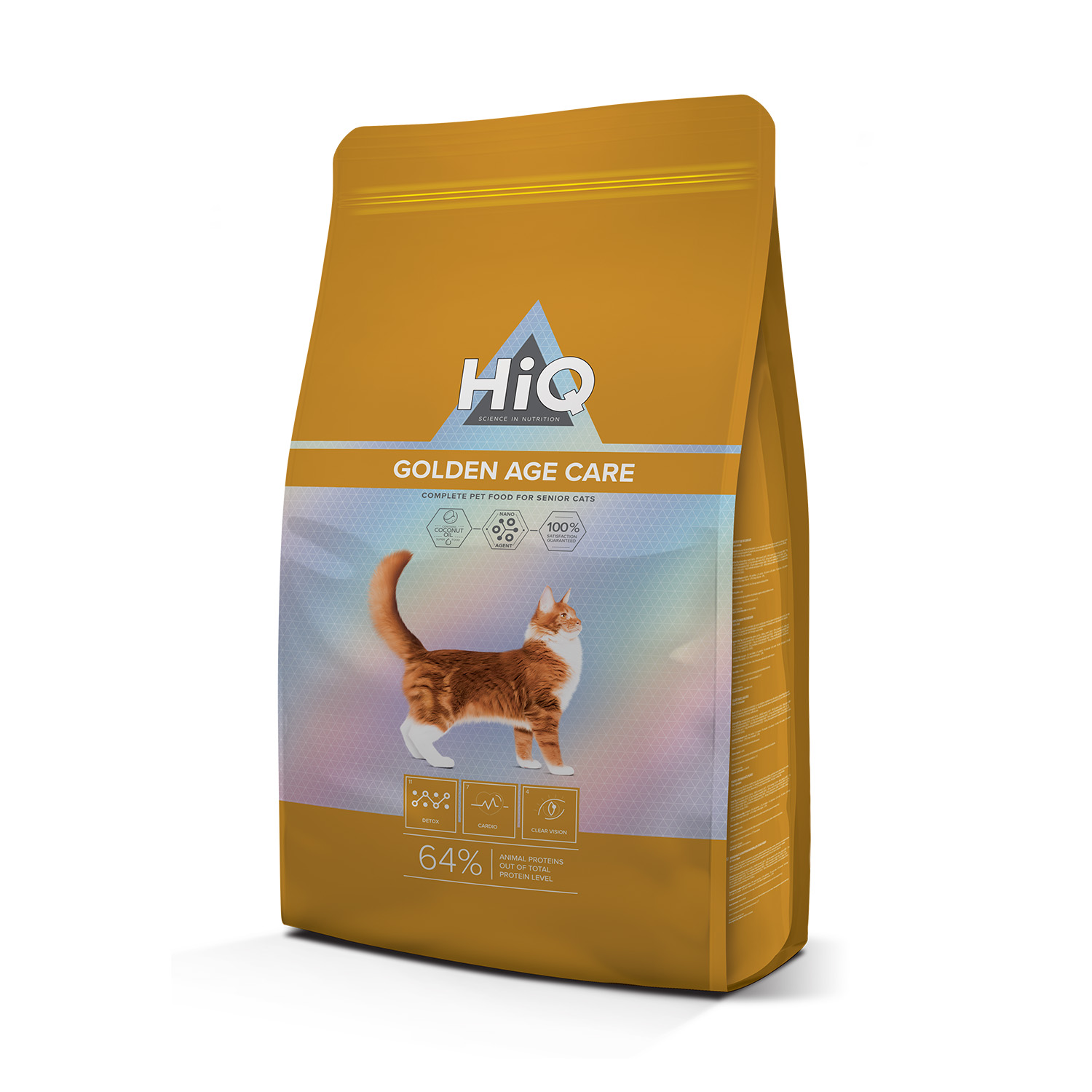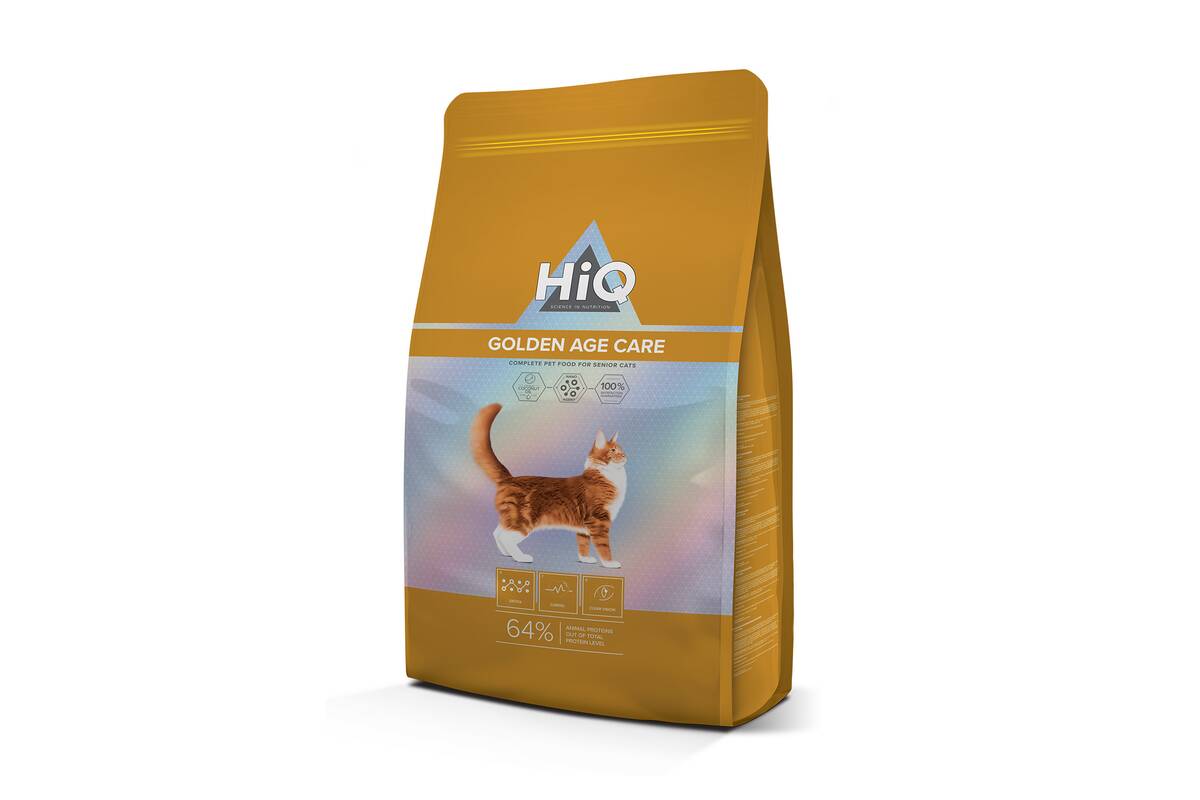 HiQ Golden Age Care - Super Premium (premium) dry feed for aging cats aged 10 years and over. This feed is designed to ensure the harmonious operation and durability of all body systems.