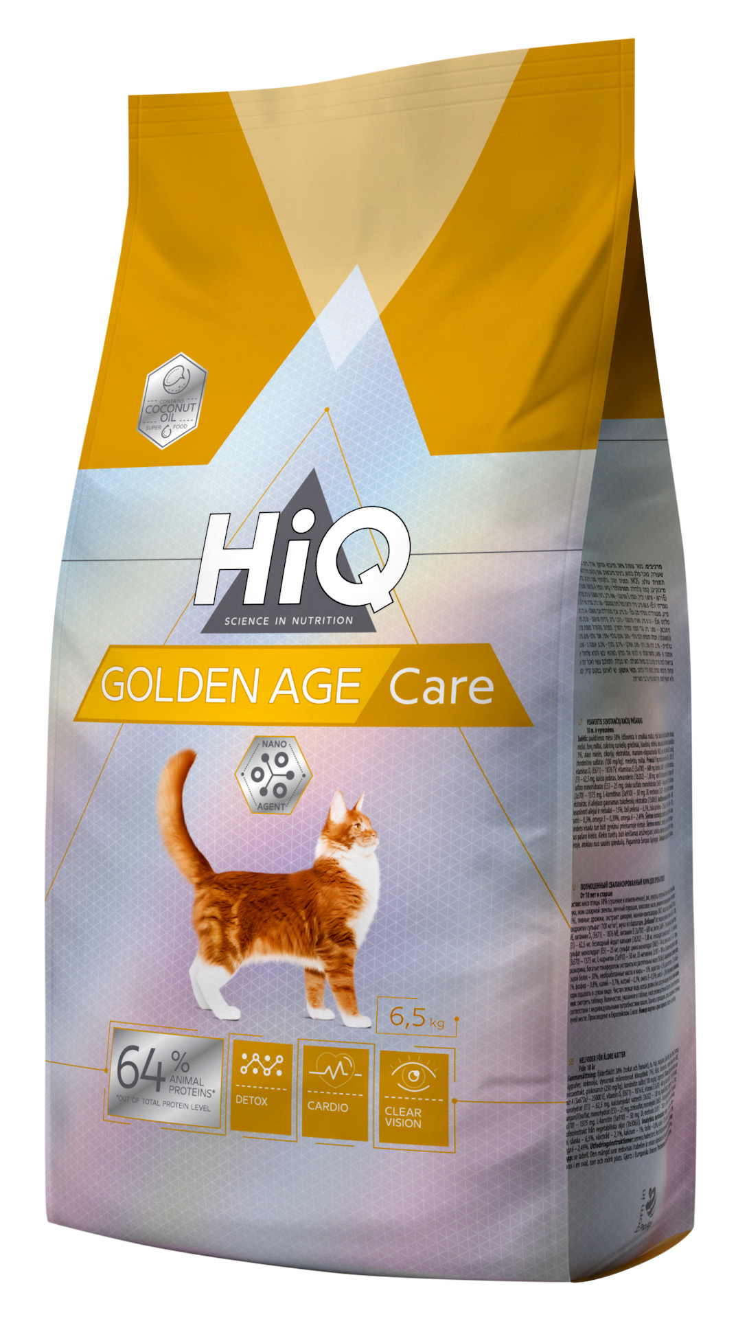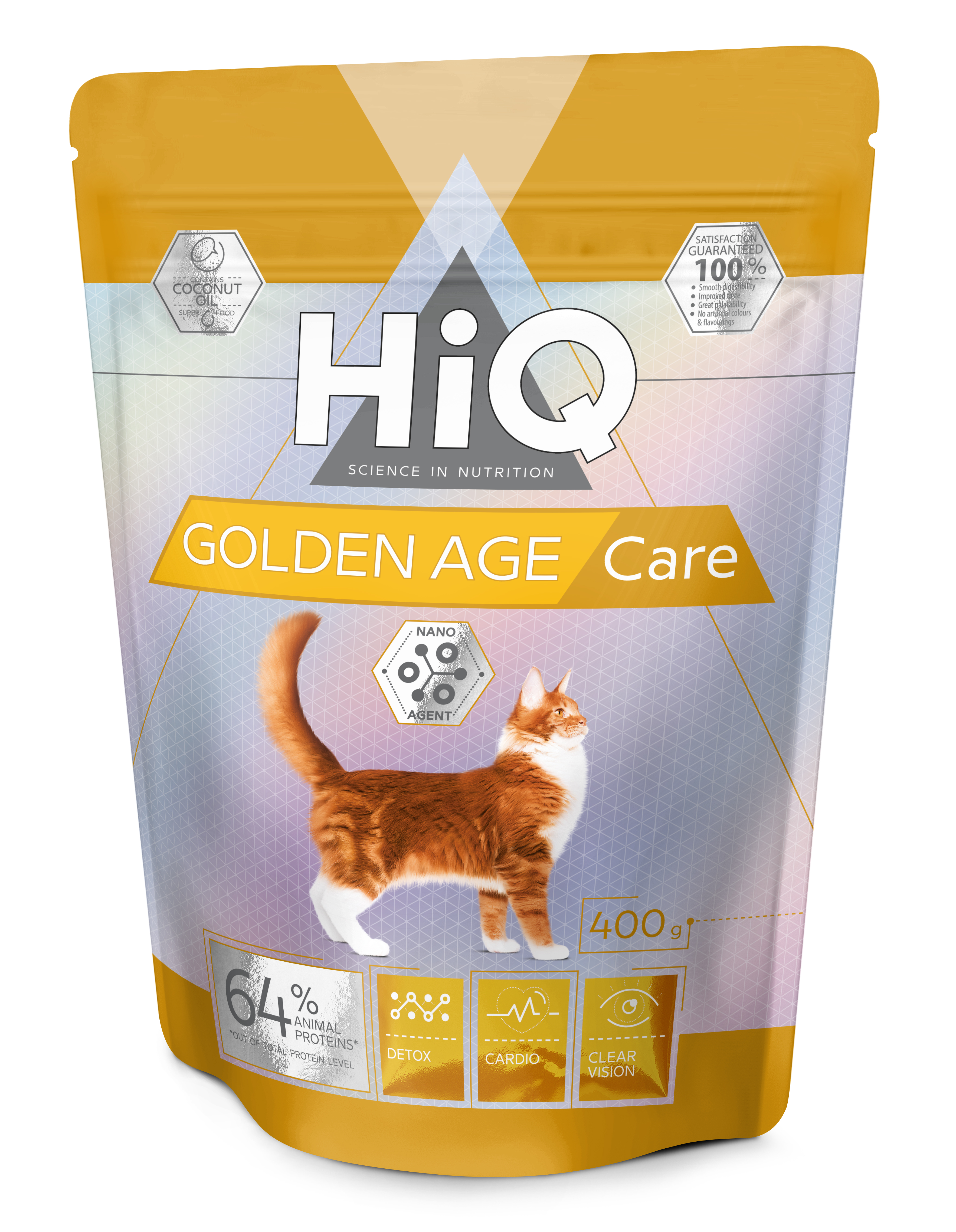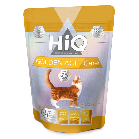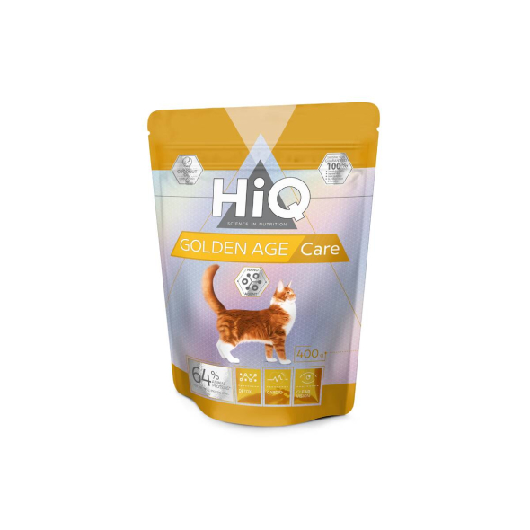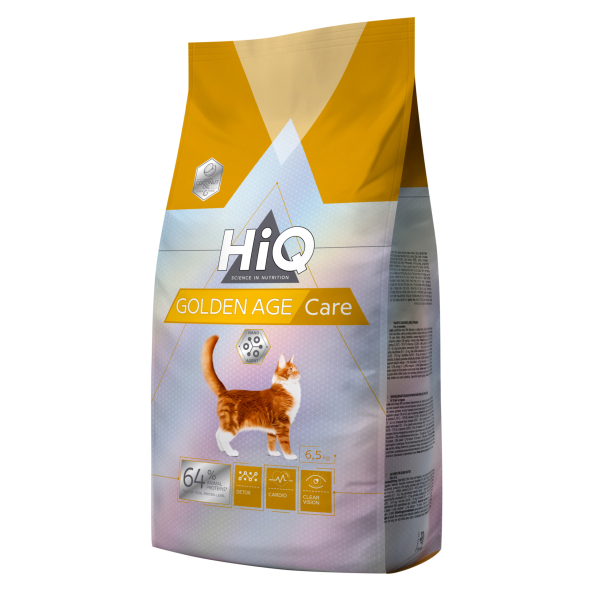 HiQ Golden Age Care - Super Premium (premium) dry feed for aging cats aged 10 years and over. This feed is designed to ensure the harmonious operation and durability of all body systems.