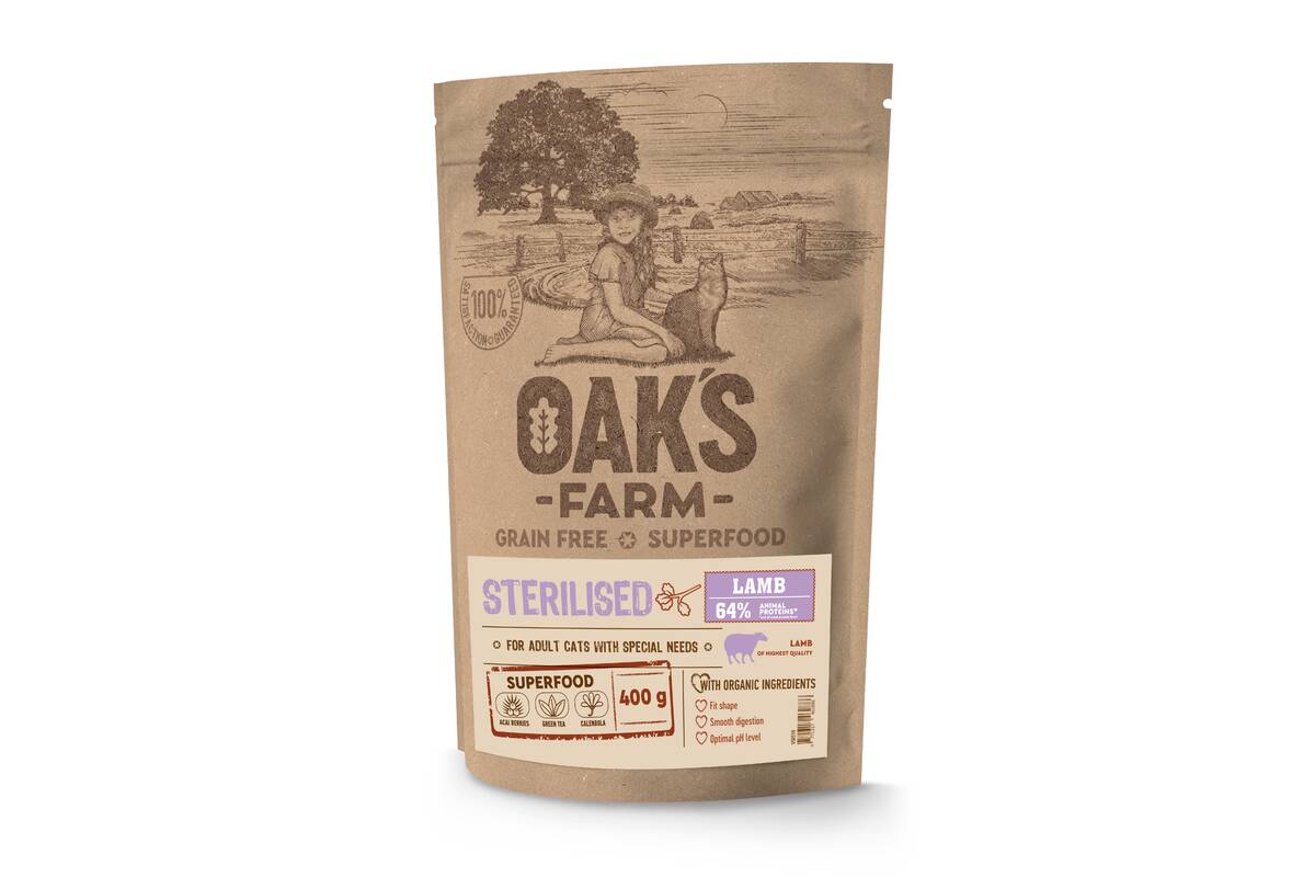 OAK'S FARM dry grain free food for adult cats after sterilisation with lamb 400 g