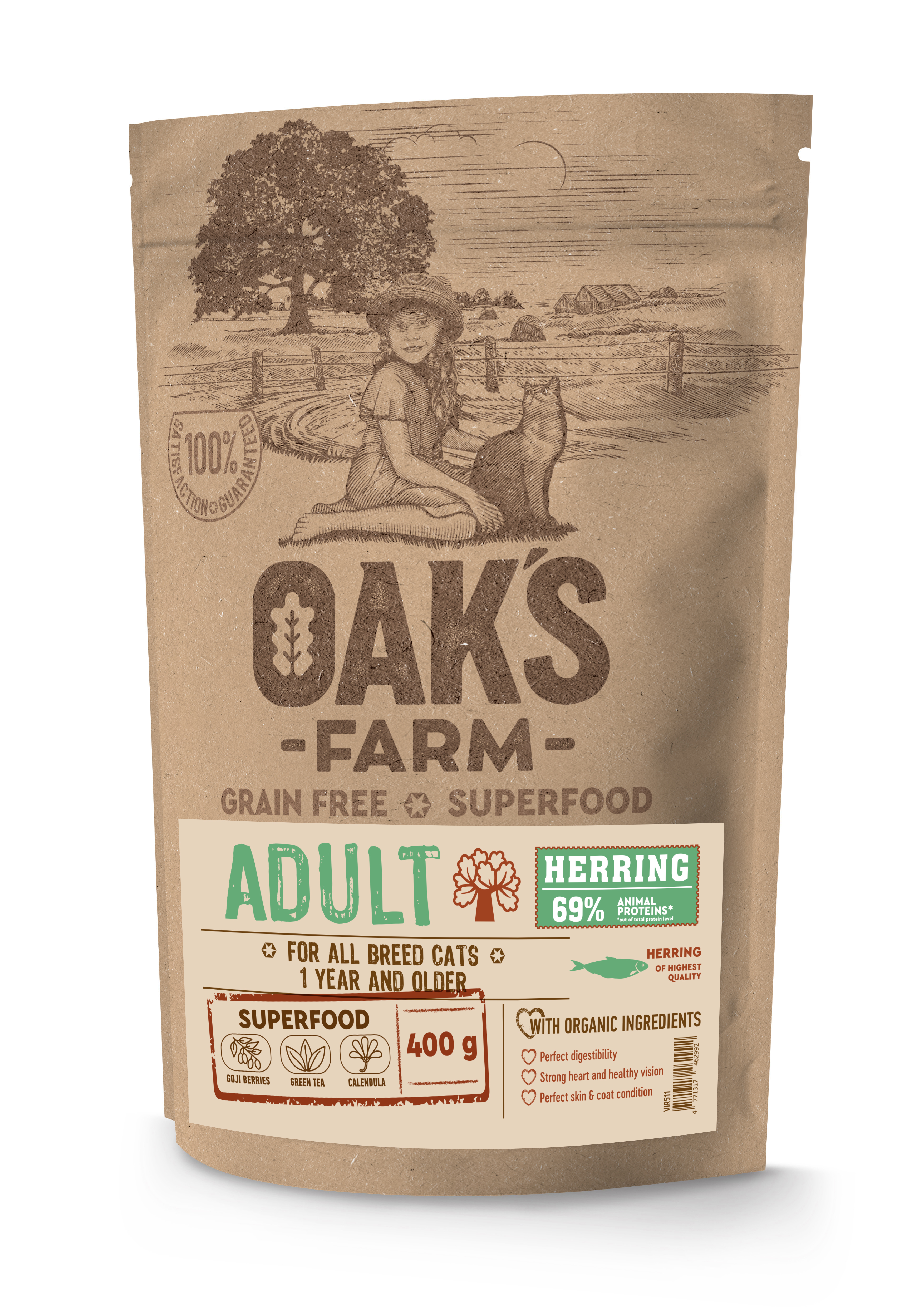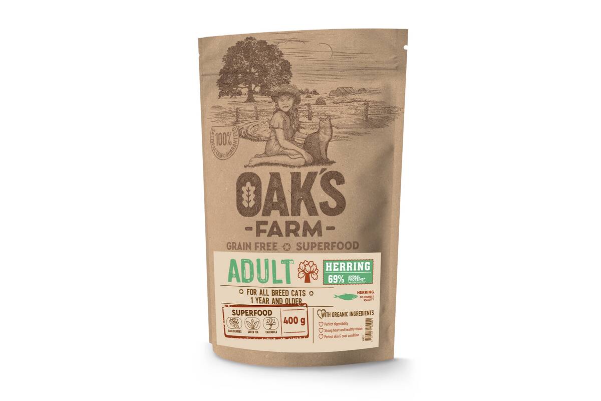 OAK'S FARM dry grain free food for adult cats with herring 400 g