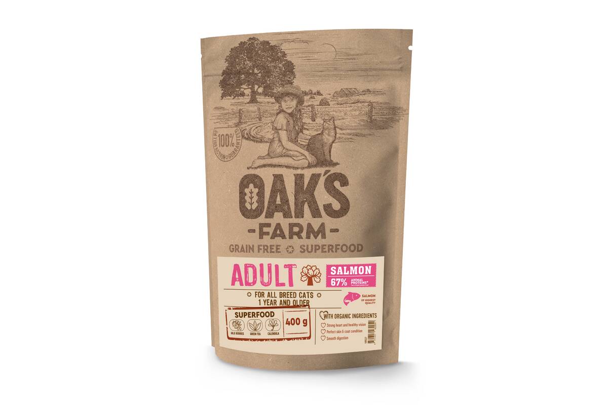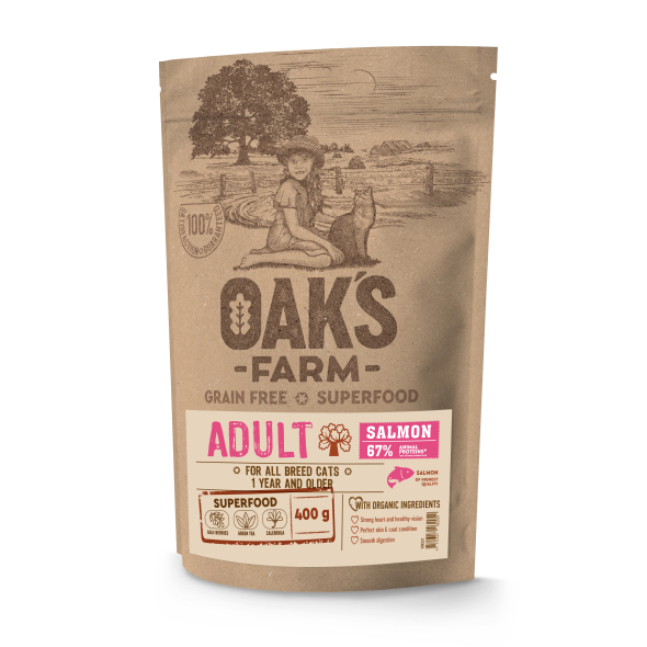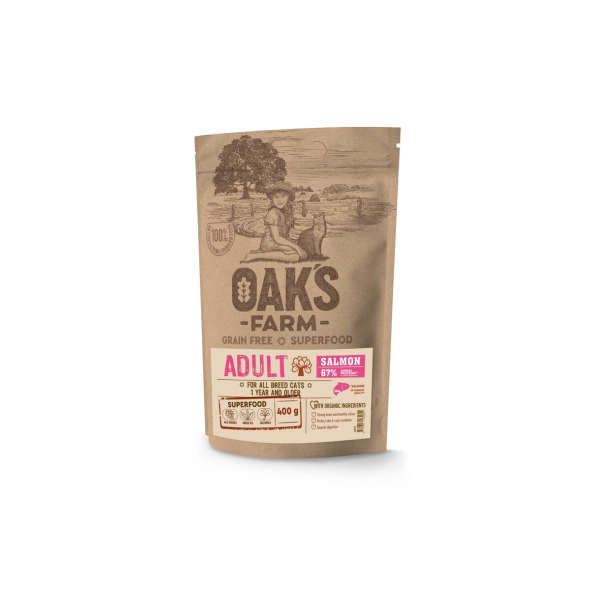 OAK'S FARM dry grain free food for adult cats with salmon 400 g