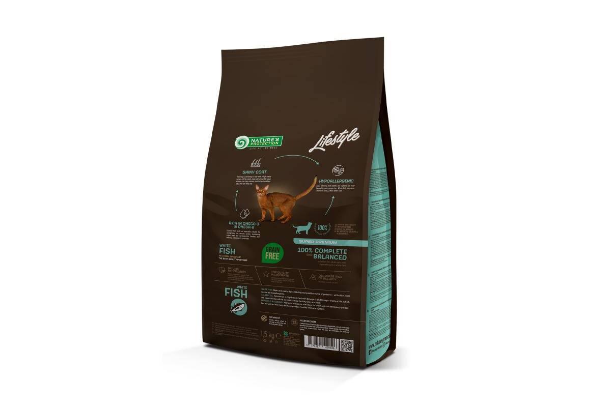NATURE'S PROTECTION LIFESTYLE dry grain free food for adult cats with white fish 1.5 kg