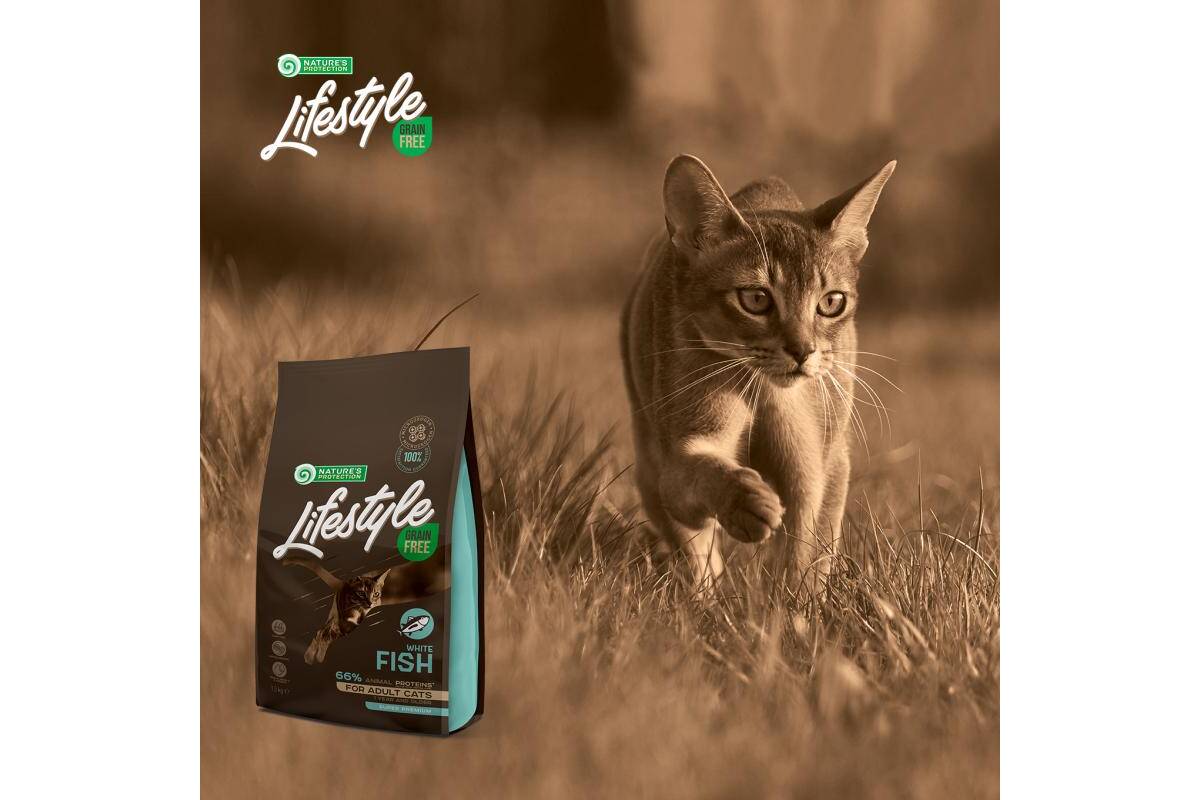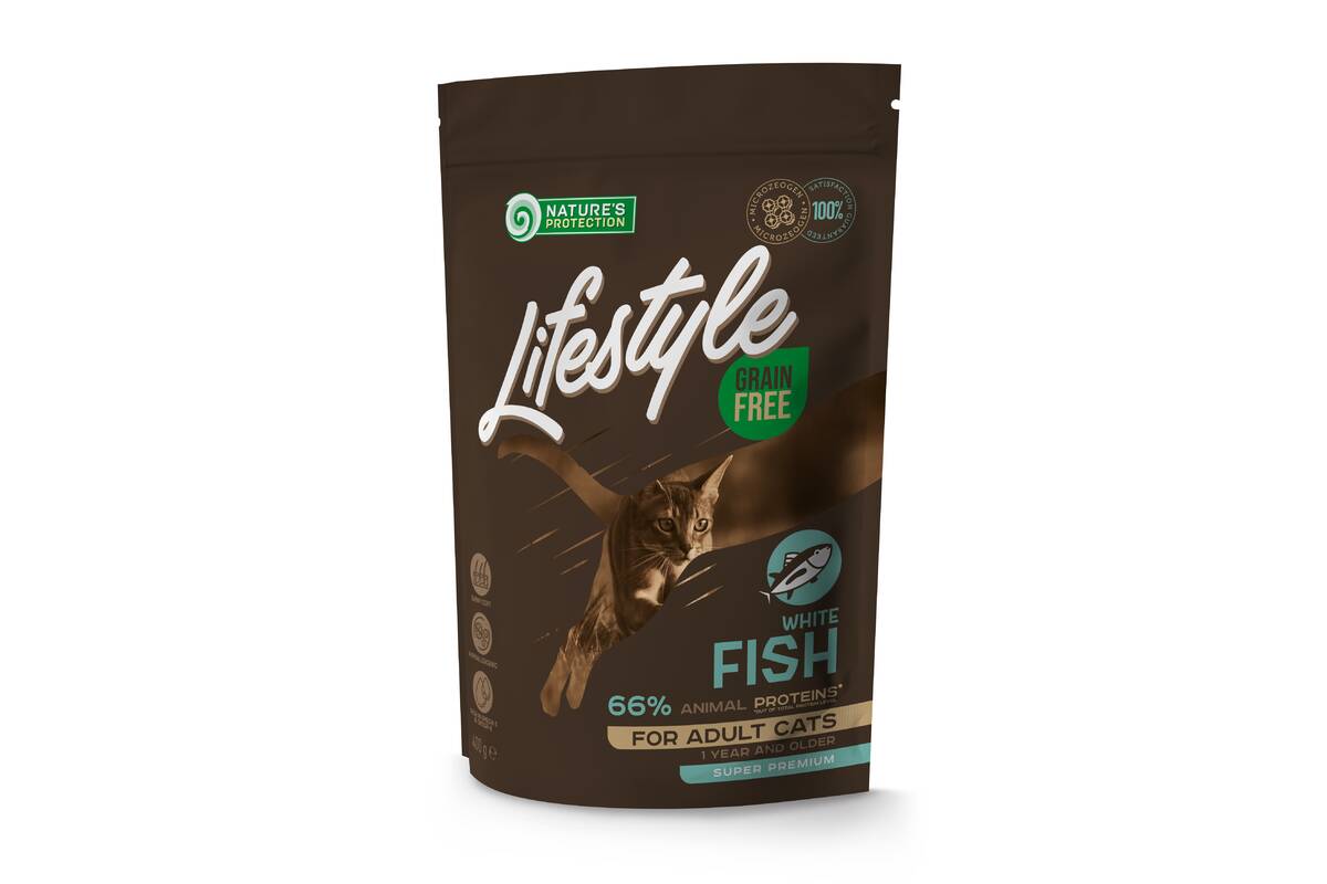 NATURE'S PROTECTION LIFESTYLE dry grain free food for adult cats with white fish 400 g