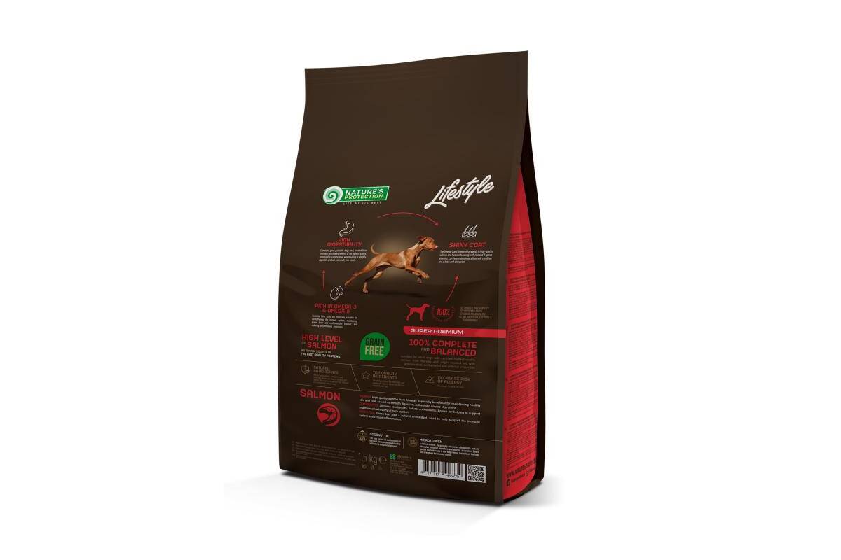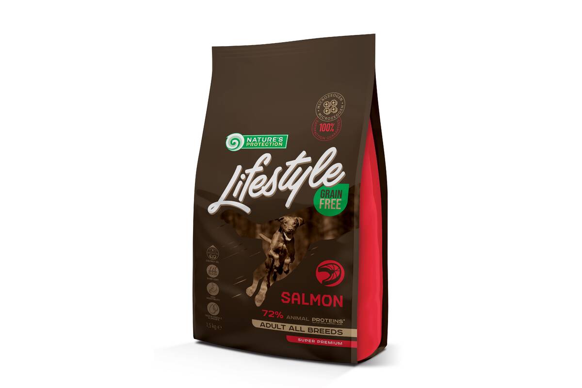 NATURE'S PROTECTION LIFESTYLE dry grain free food for adult dogs of all breeds with salmon 1.5 kg