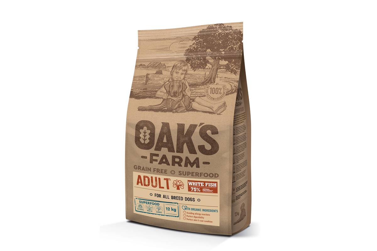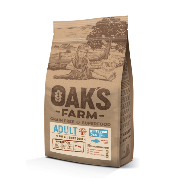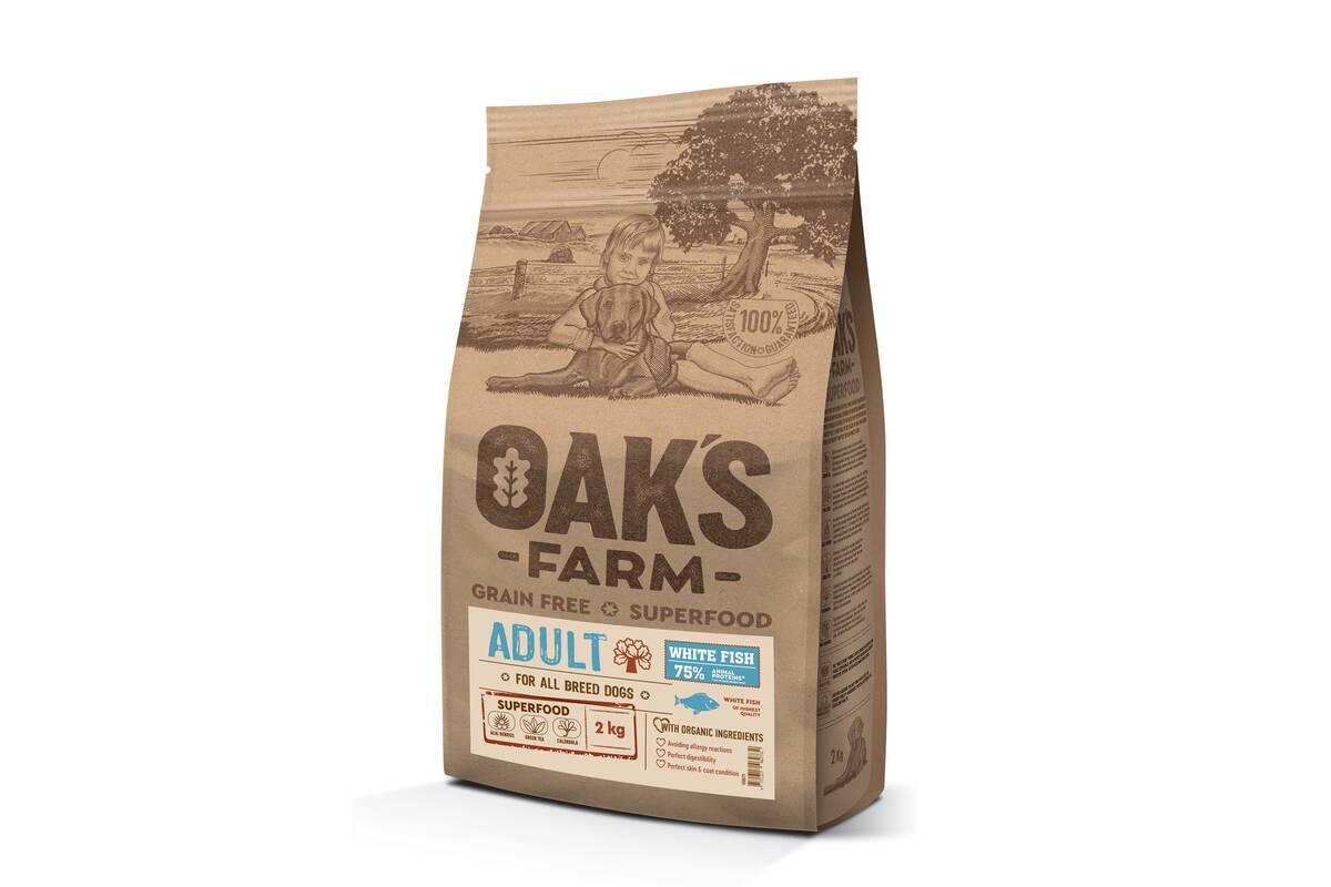 OAK'S FARM dry grain free food for adult dogs of all breeds with white fish 2kg