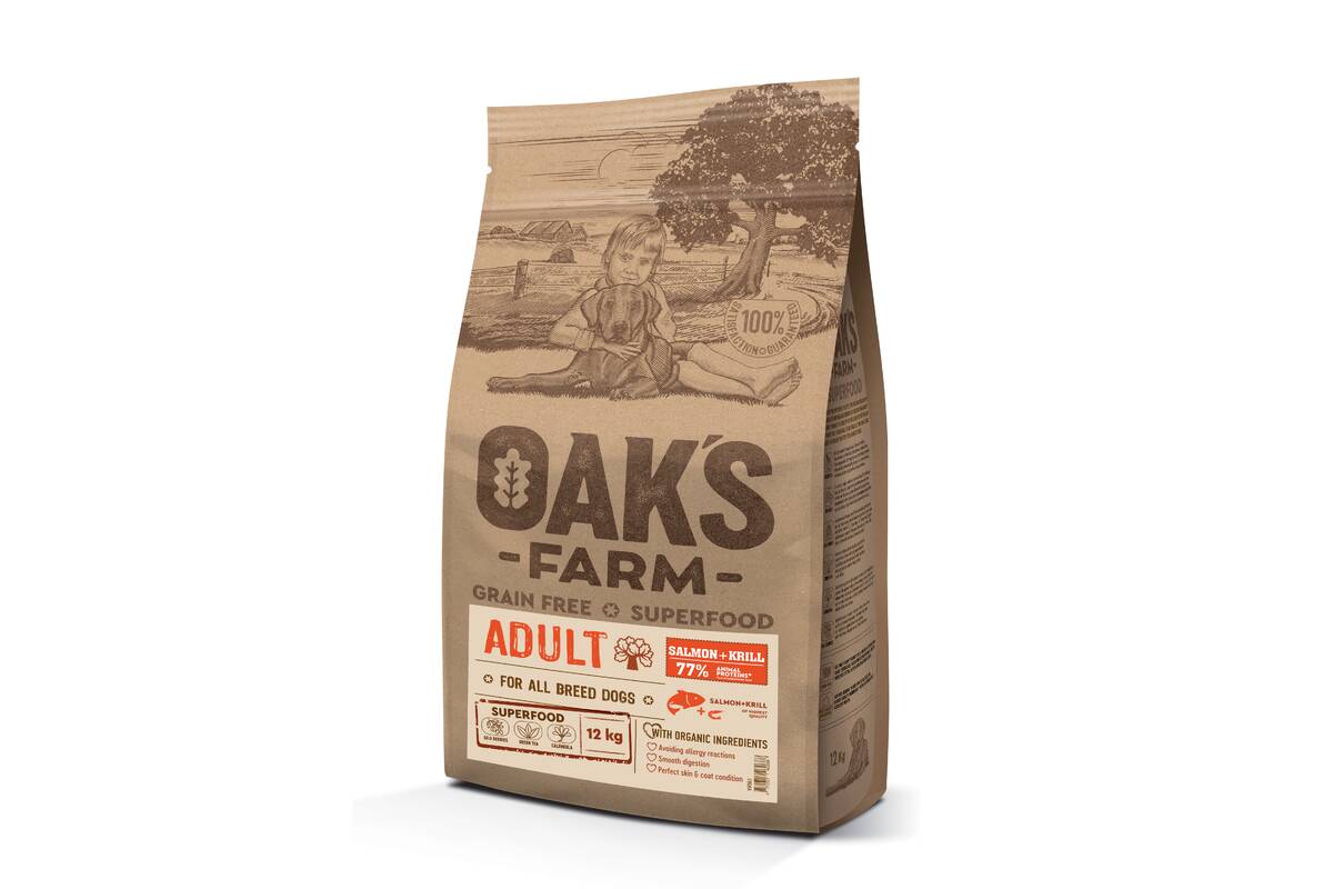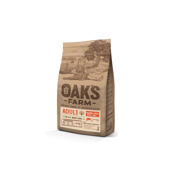 OAK'S FARM dry grain free food for adult, for all breed dogs with salmon and krill 12 kg