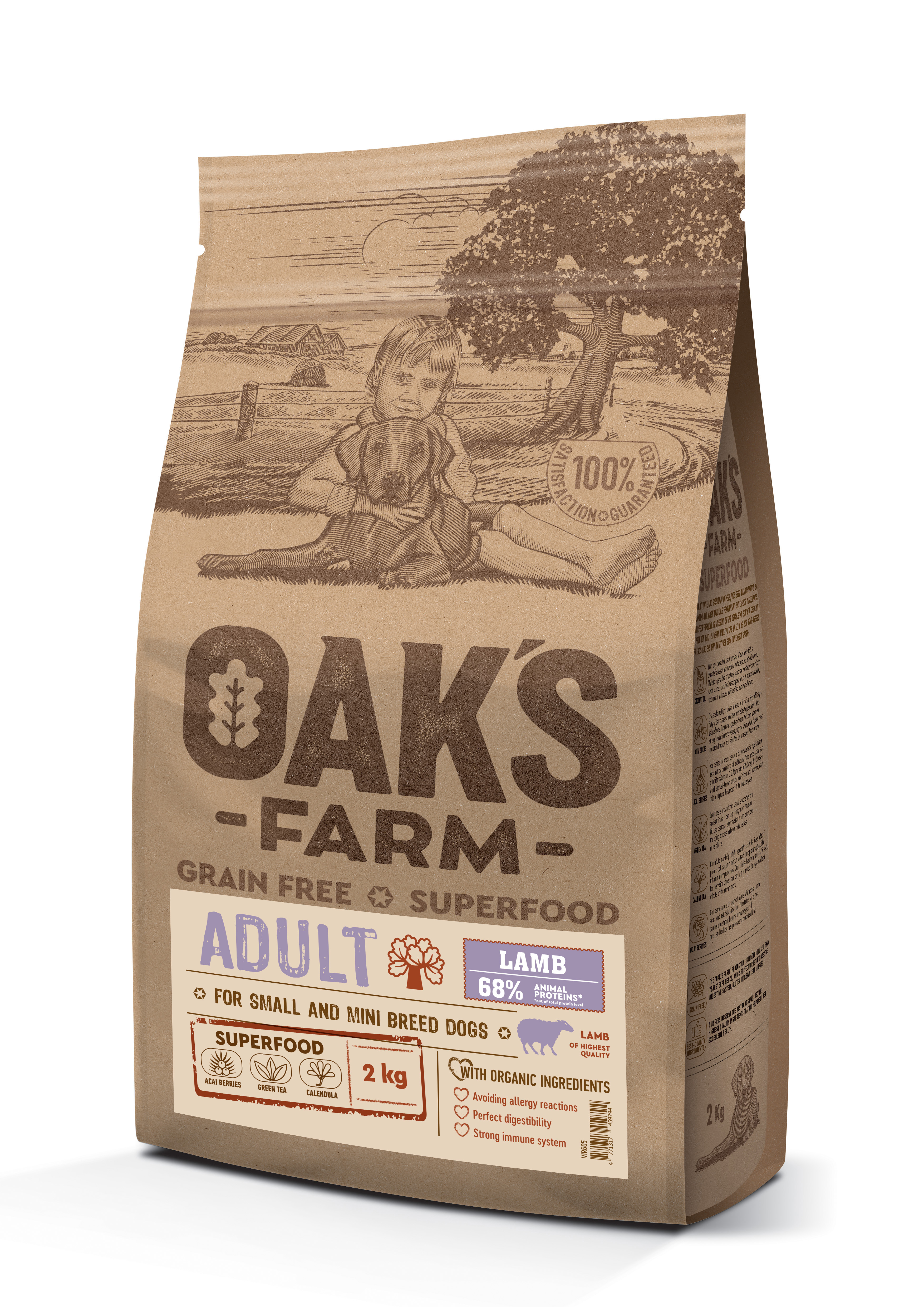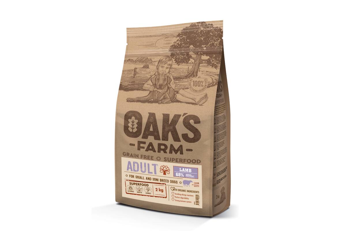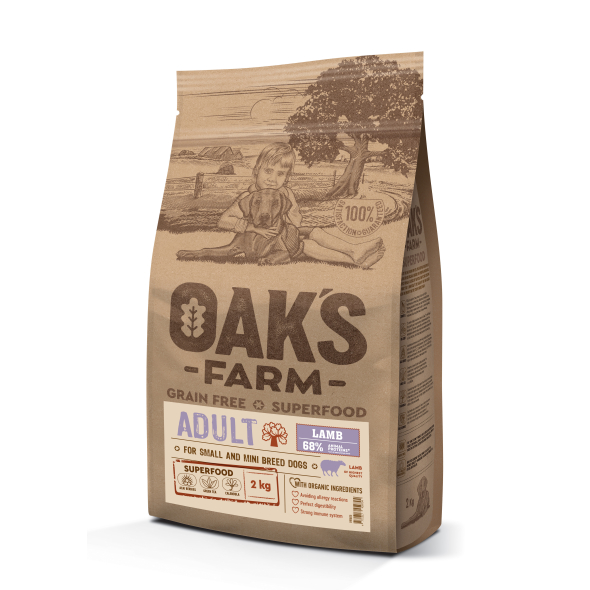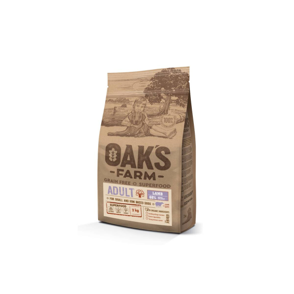 OAK'S FARM dry grain free food for adult, small and mini breed dogs with lamb 2 kg