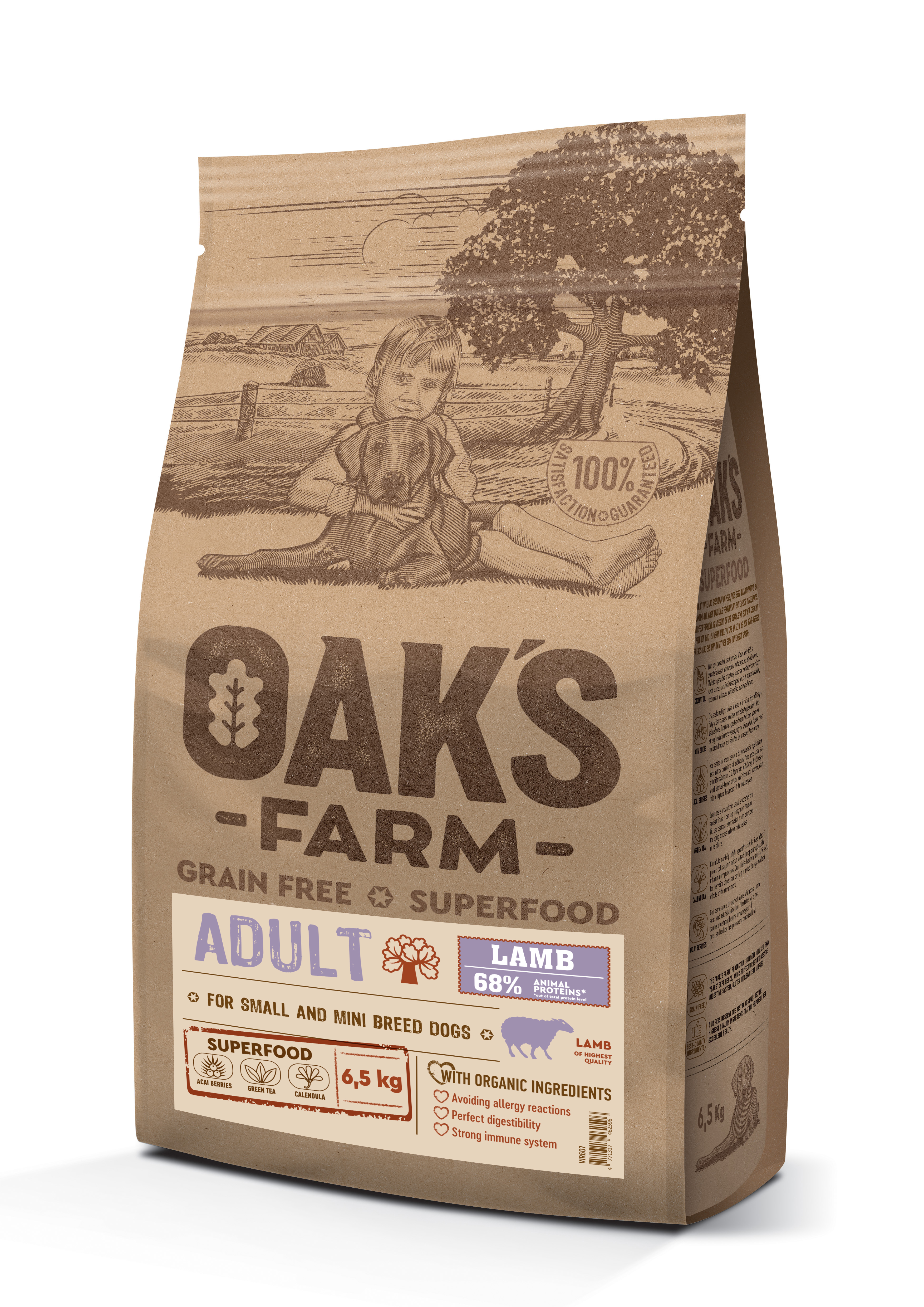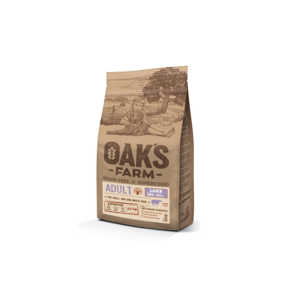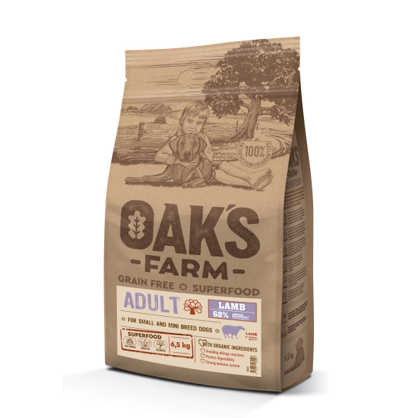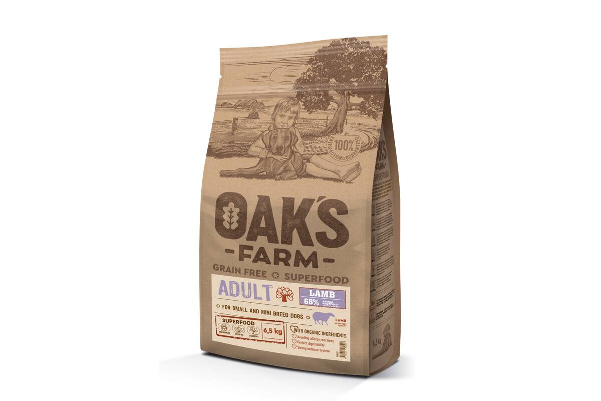 OAK'S FARM dry grain free food for adult, small and mini breed dogs with lamb 6.5 kg