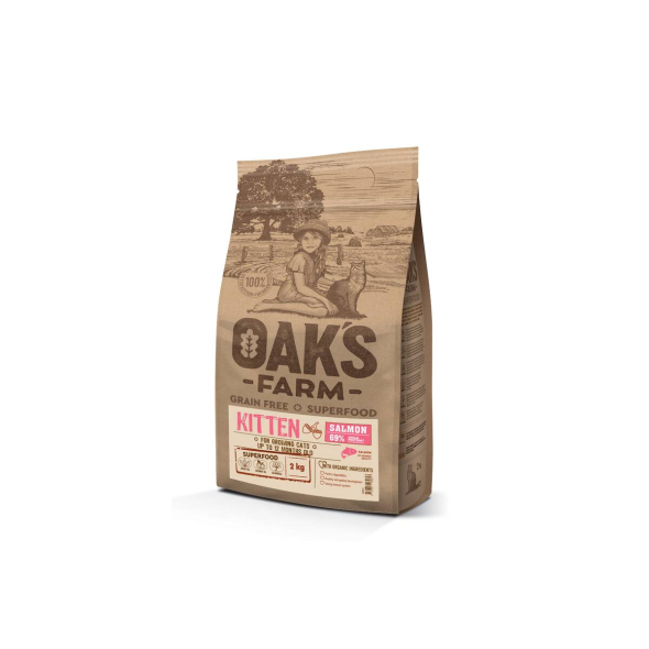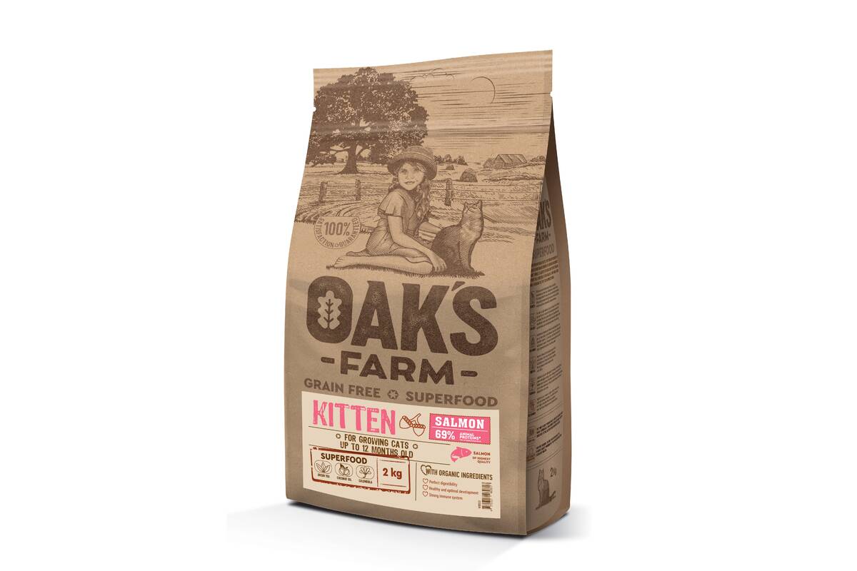 OAK'S FARM dry grain free food for kittens with salmon 2 kg