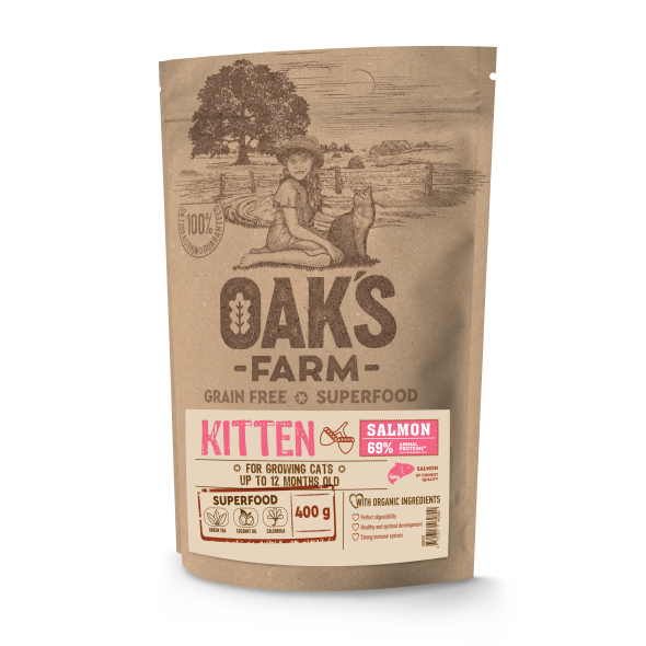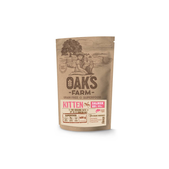 OAK'S FARM dry grain free food for kittens with salmon 400 g