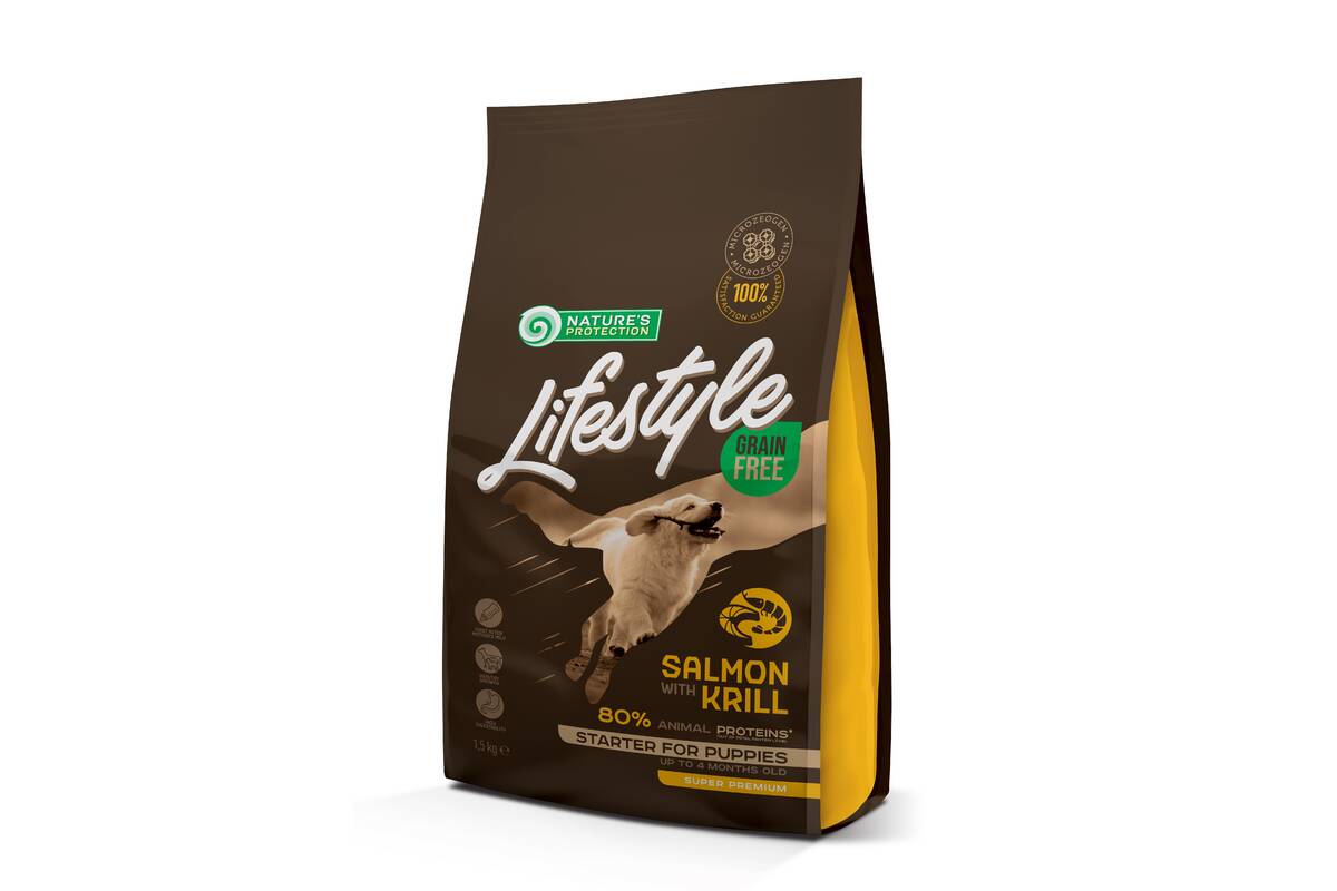 NATURE'S PROTECTION LIFESTYLE dry grain free food for puppies of all breeds with salmon and krill 1.5 kg