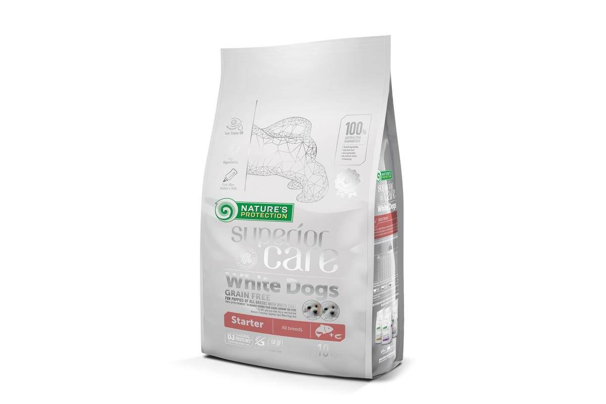 NATURE'S PROTECTION SUPERIOR CARE dry grain free food for puppies of all breeds with white coat, with salmon 10 kg