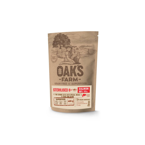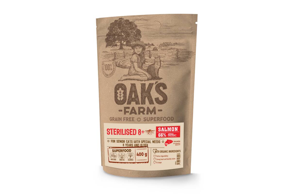 OAK'S FARM dry grain free food for senior cats after sterilisation with salmon 400 g