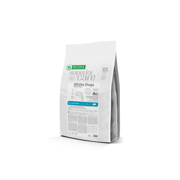NATURE'S PROTECTION SUPERIOR CARE dry grain free pet food with white fish for dogs of all sizes and life stages with white coat 10 kg