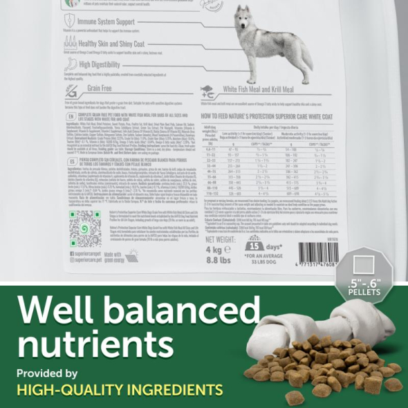 NATURE'S PROTECTION SUPERIOR CARE dry grain free pet food with white fish for dogs of all sizes and life stages with white coat 4 kg